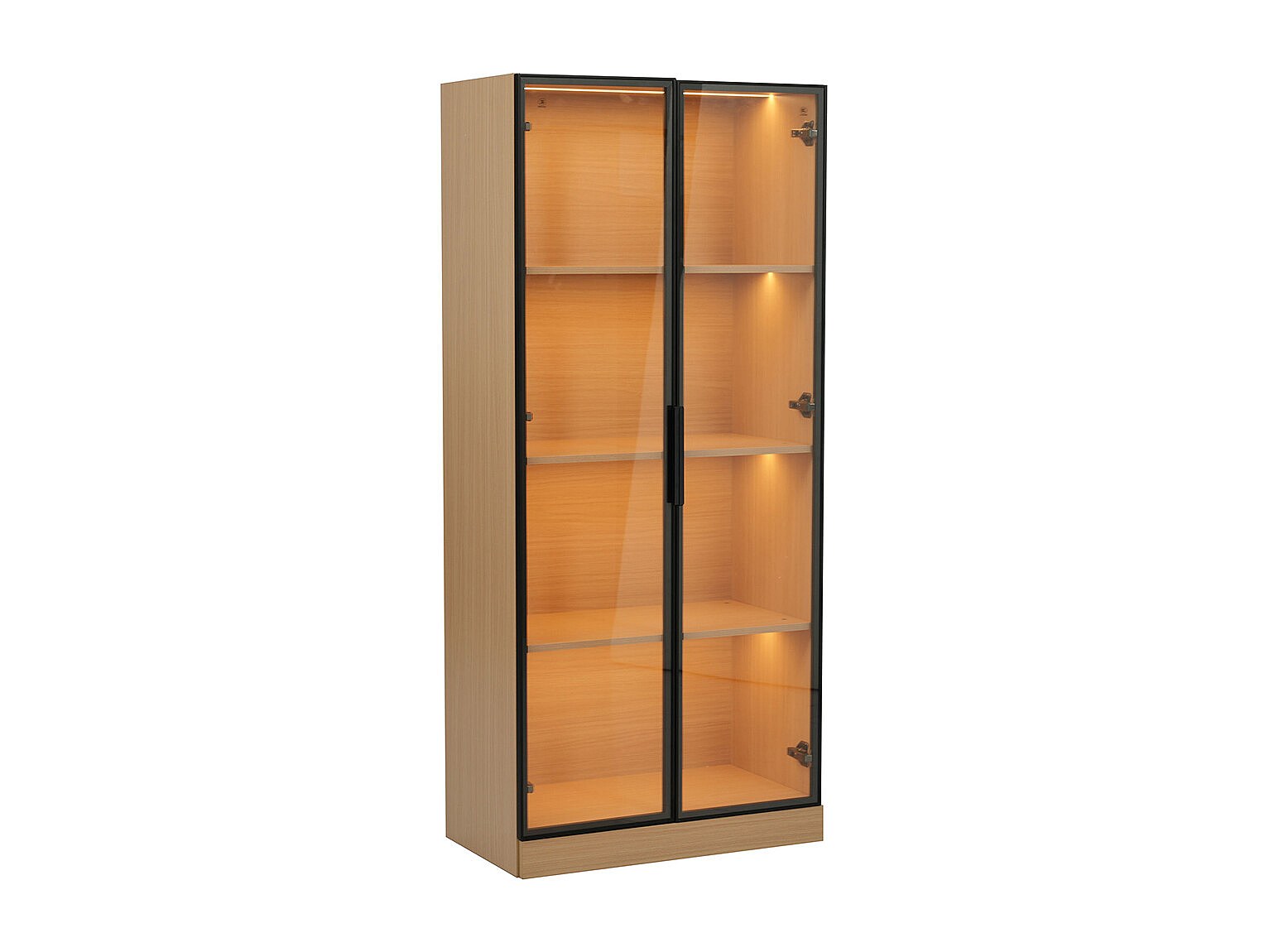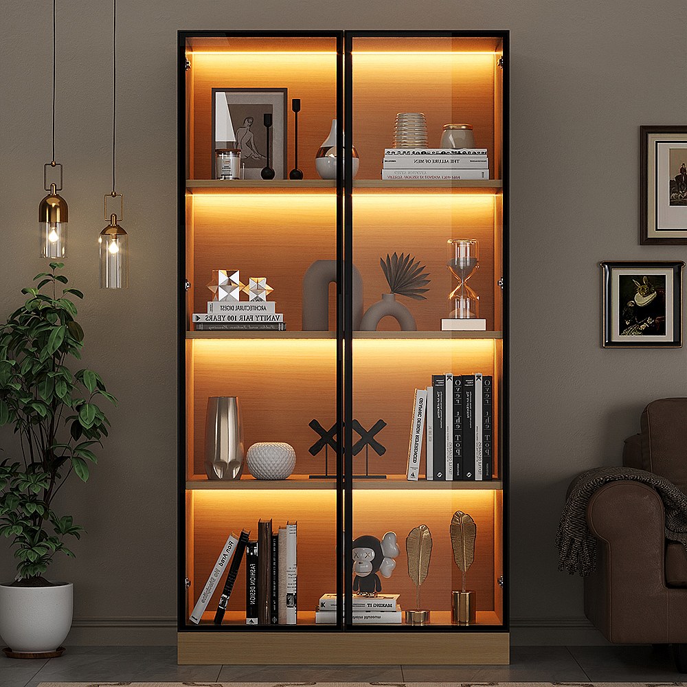 Vitrine verre chêne bois LED portes verre trempé éclairage étagères bibliothèque vin salle bain