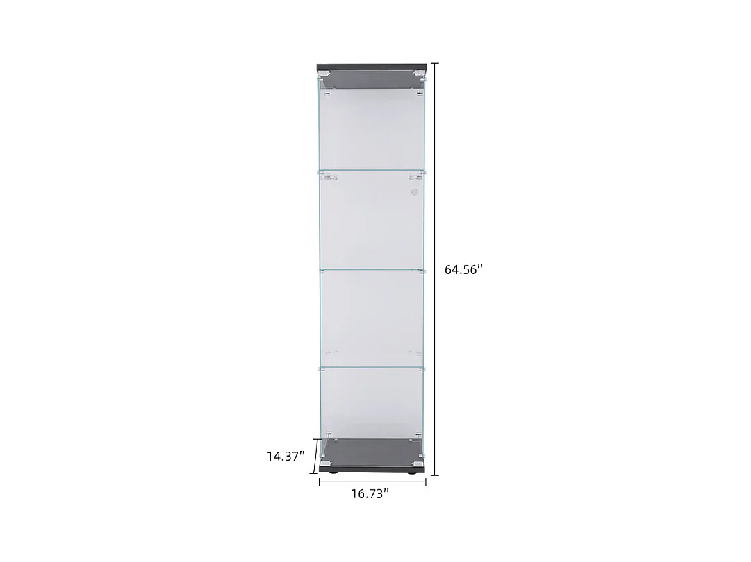 Vitrine, Vitrine en verre 4 étagères avec porte, Vitrine transparente, Armoire de rangement de sol en verre avec serrure, Noir