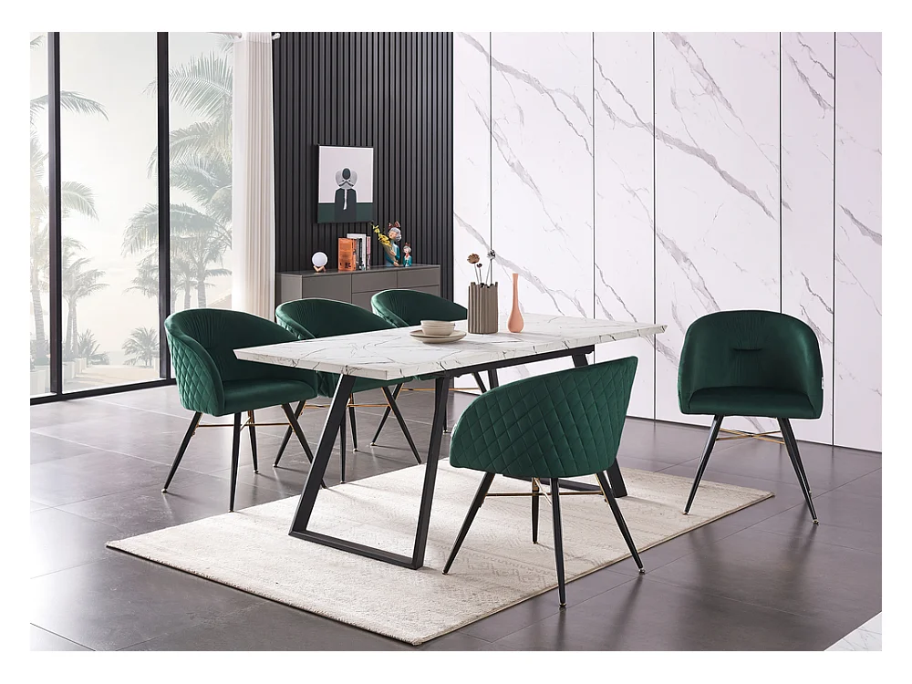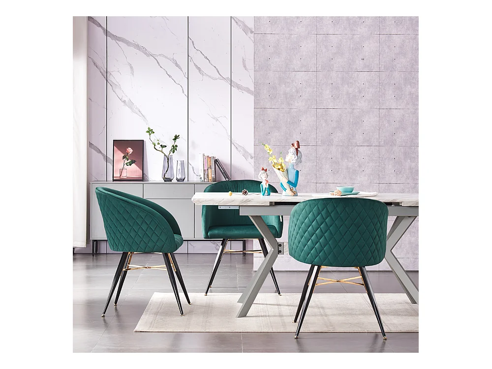 VITTORIO - Lot de 6 Fauteuils Chaises de Salle à Manger en Velours - Pieds Noirs et Dorés en Acier Inoxydable - Vert