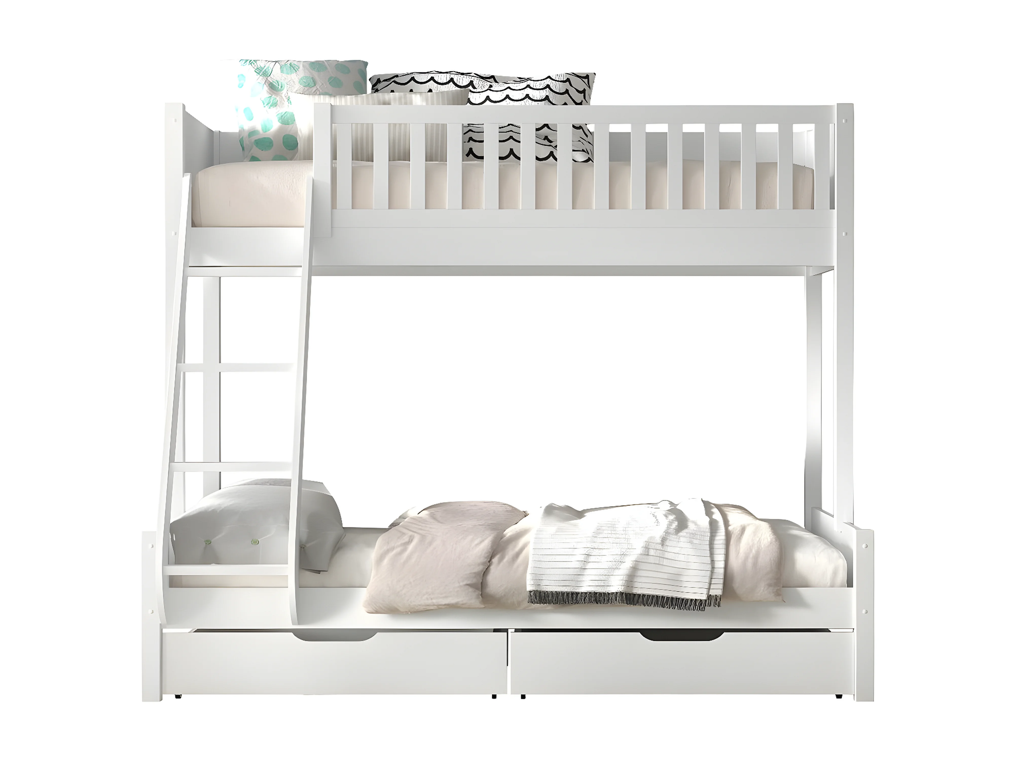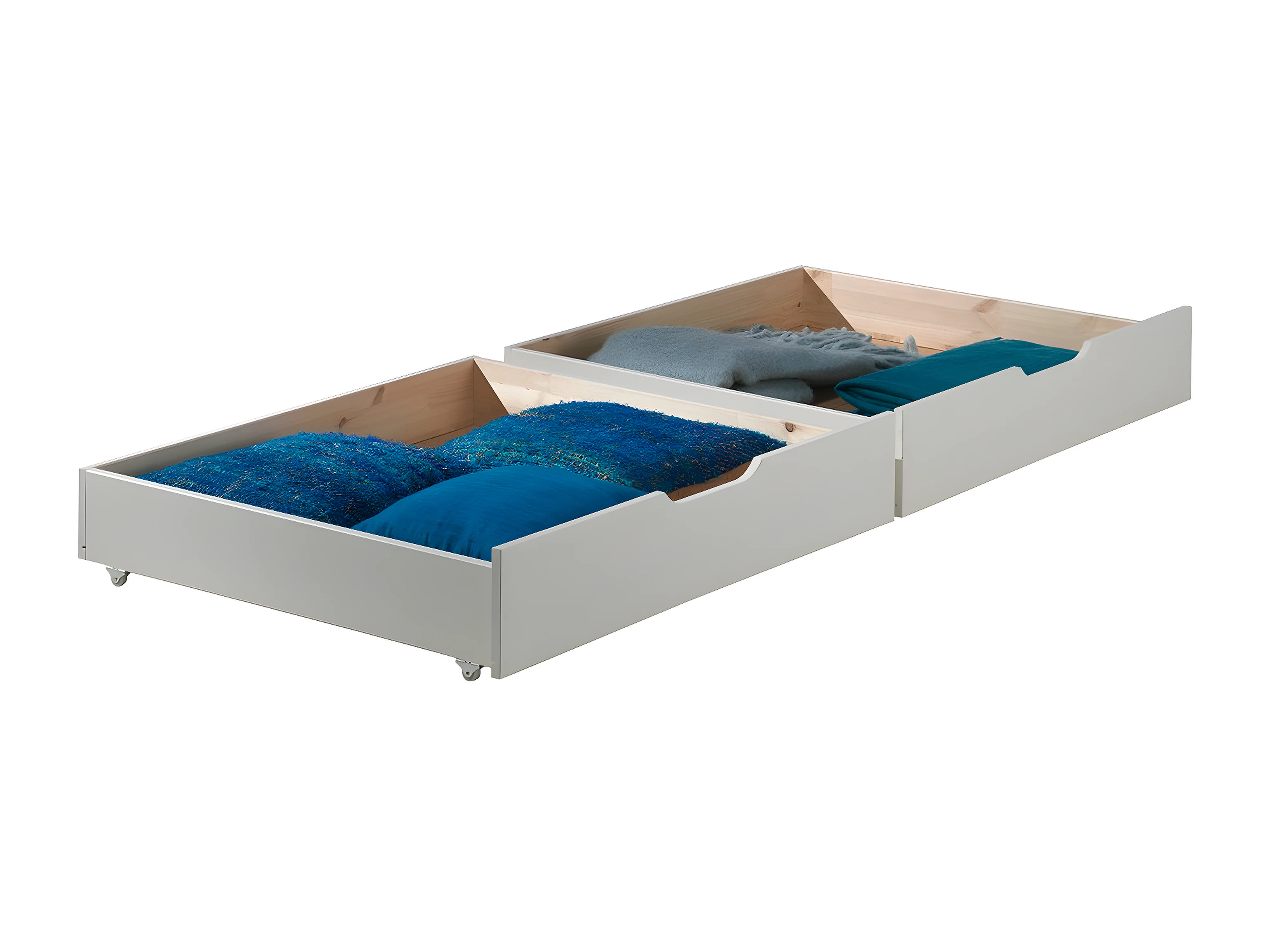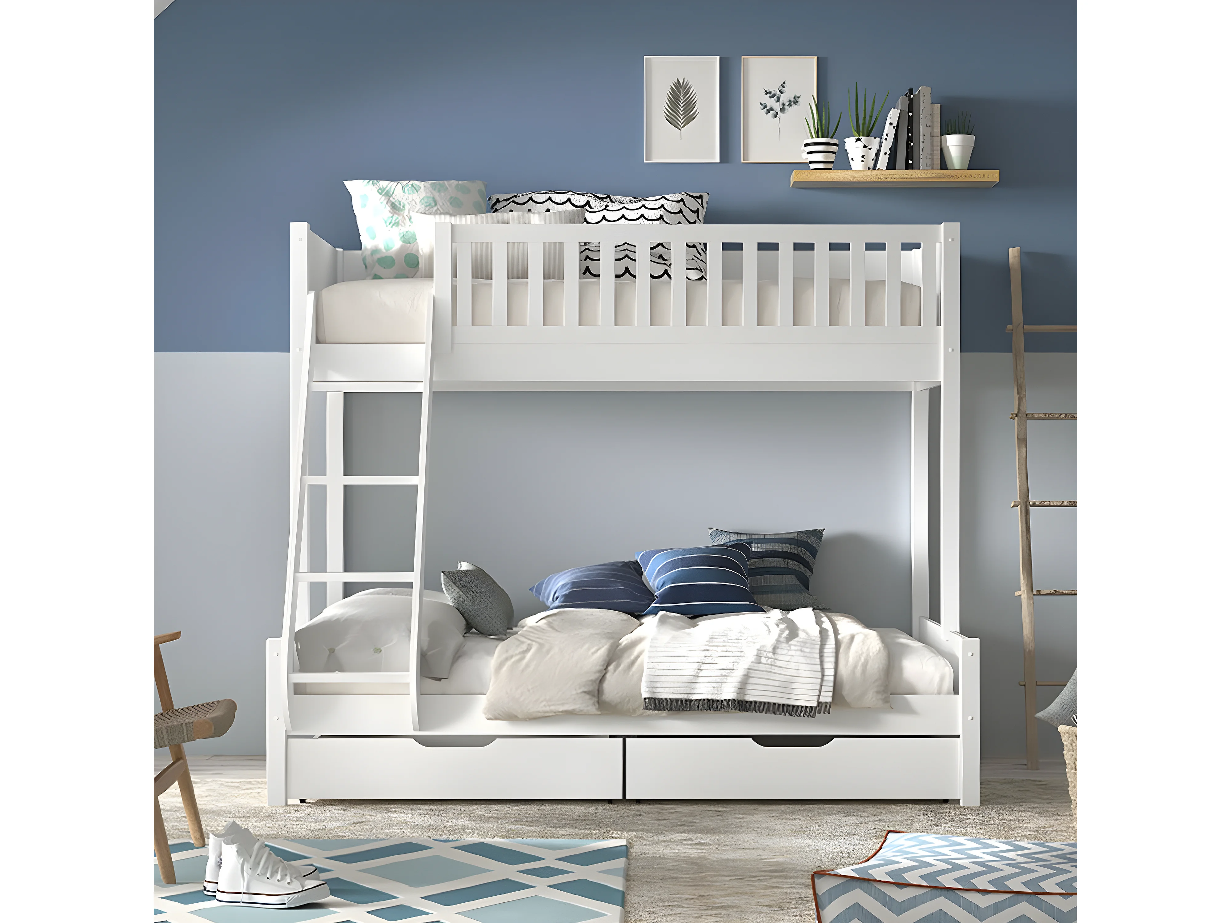 VIVIEN - Lit Superposé 2 Tiroirs en Pin Laqué Blanc Couchages 140x200cm et 90x200cm