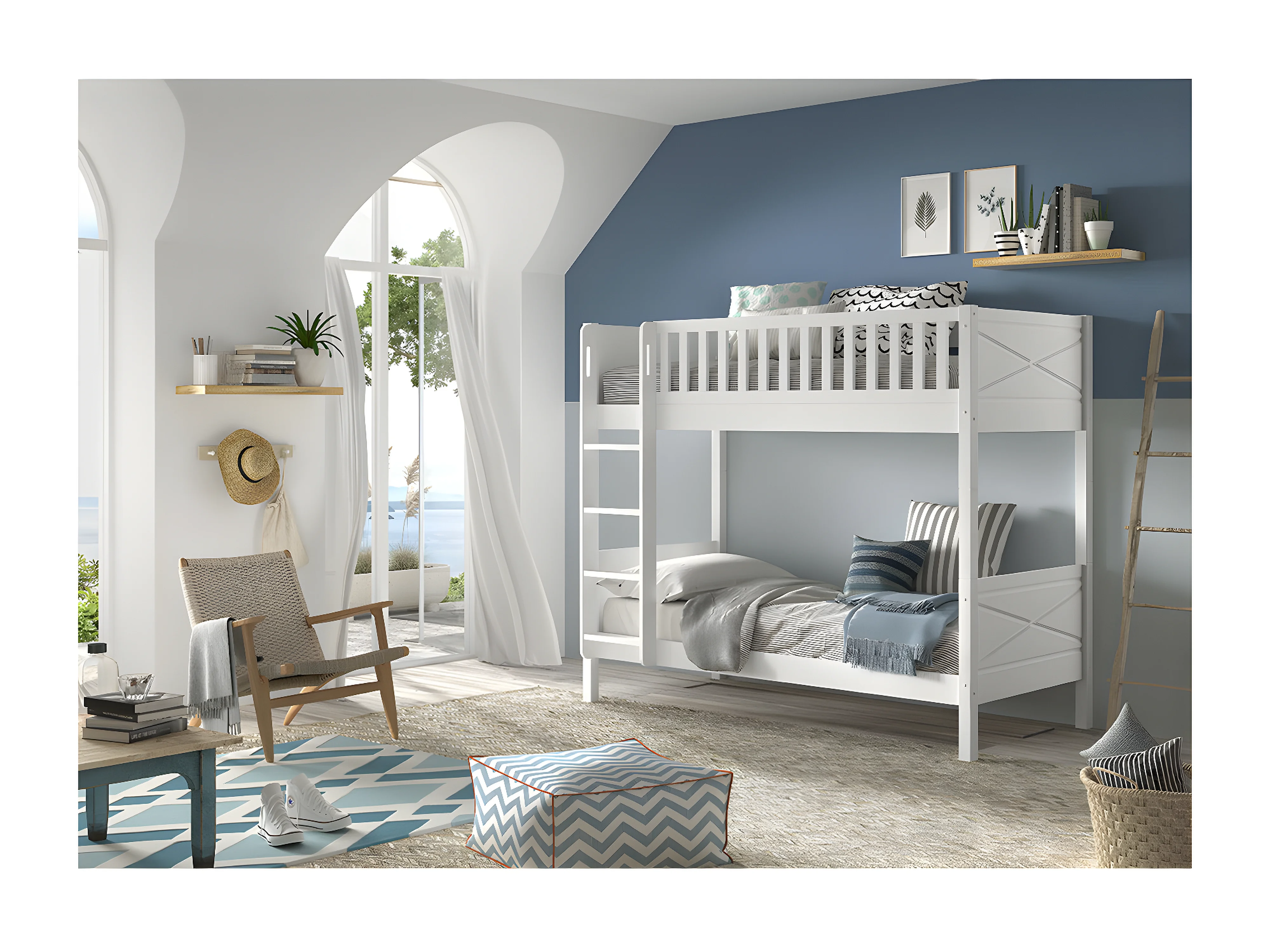 VIVIEN - Lit Superposé en Pin Laqué Blanc 90x200cm