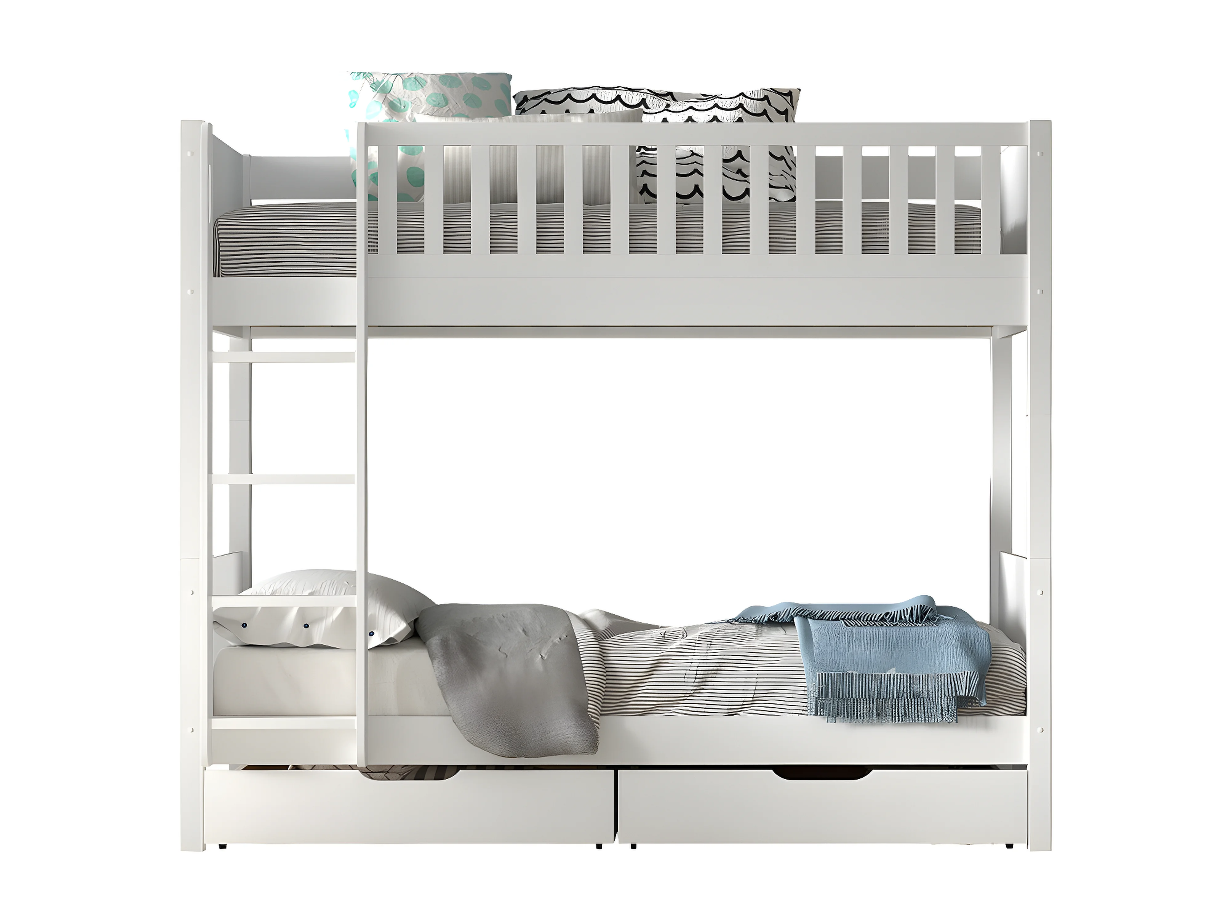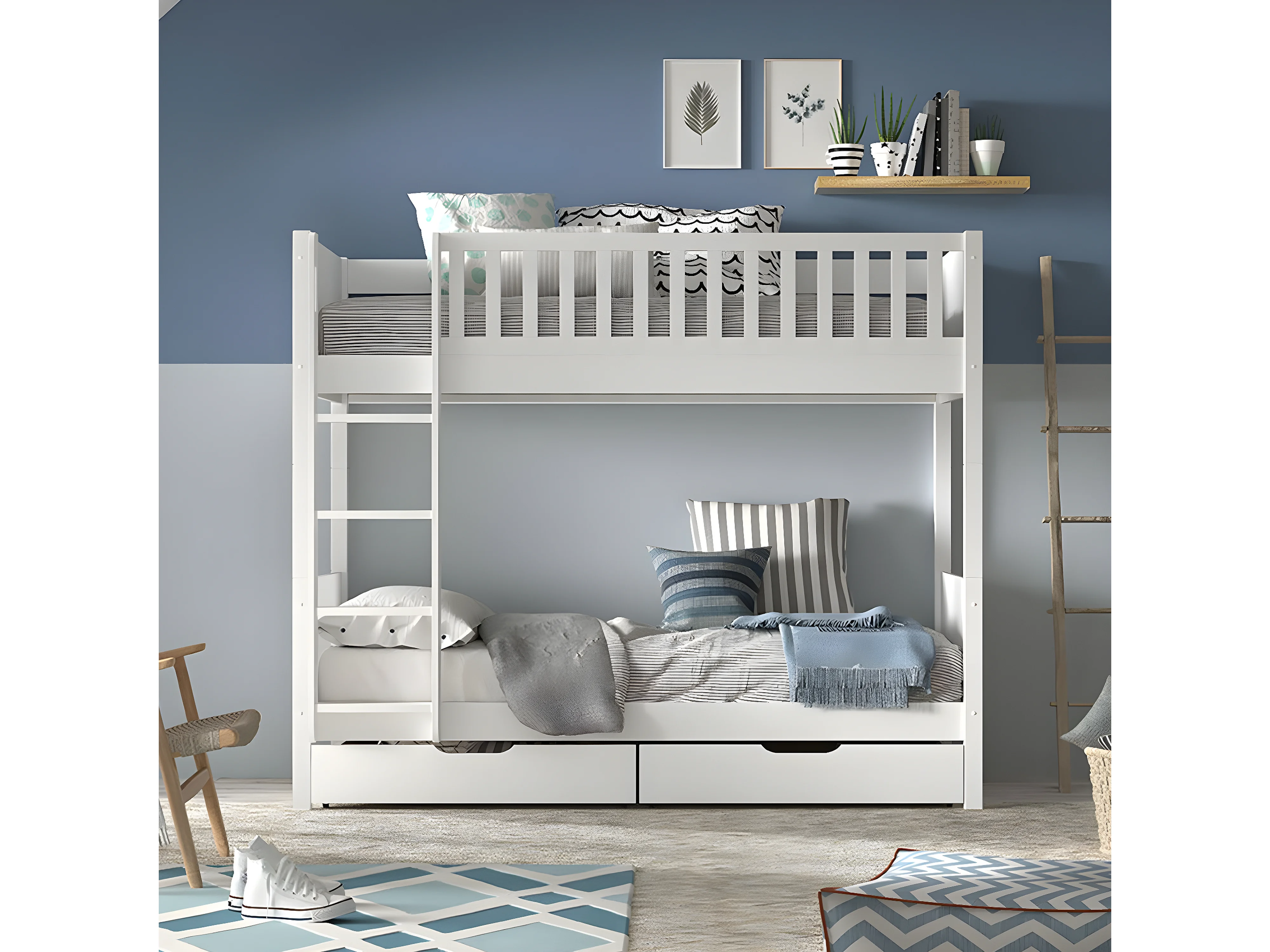 VIVIEN - Lit Superposé en Pin Laqué Blanc 90x200cm avec 2 Tiroirs