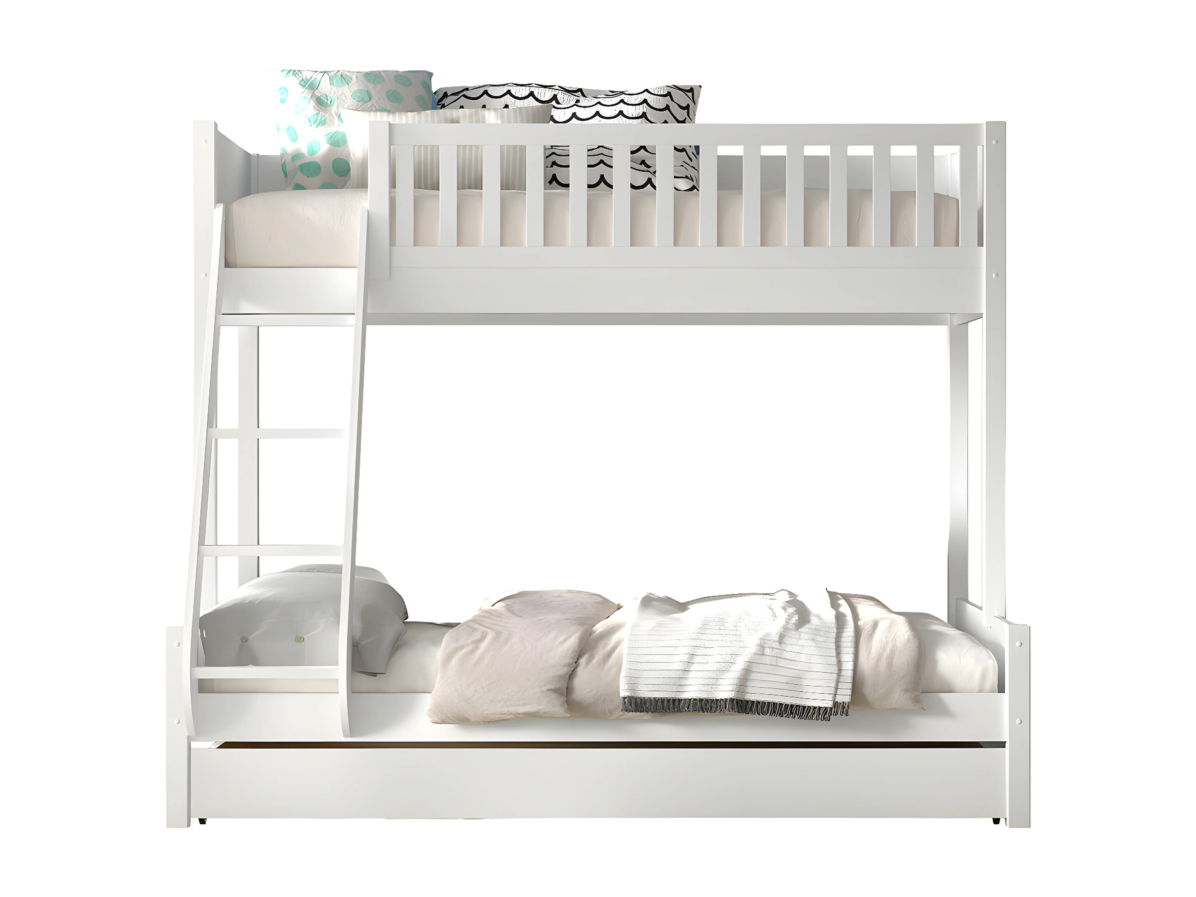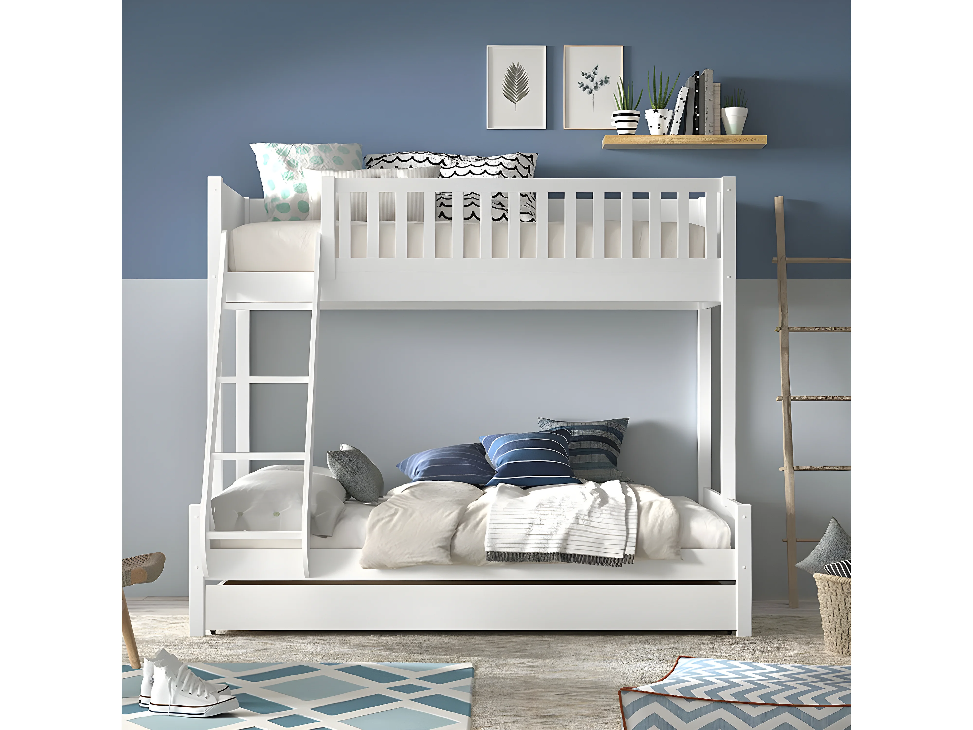 VIVIEN - Lit Superposé Gigogne en Pin Laqué Blanc Couchages 140x200cm et 90x200cm