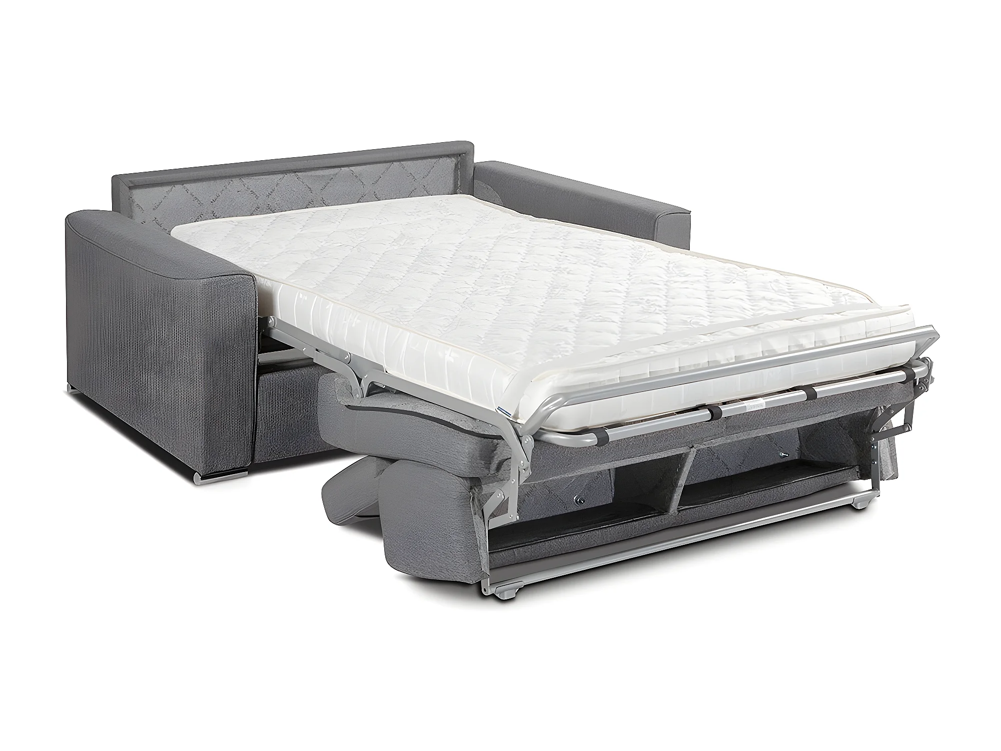 Canapé 2 places convertible express en tissu gris avec assise mémoire de forme - Couchage 120 cm - Matelas 14 cm VIZIR