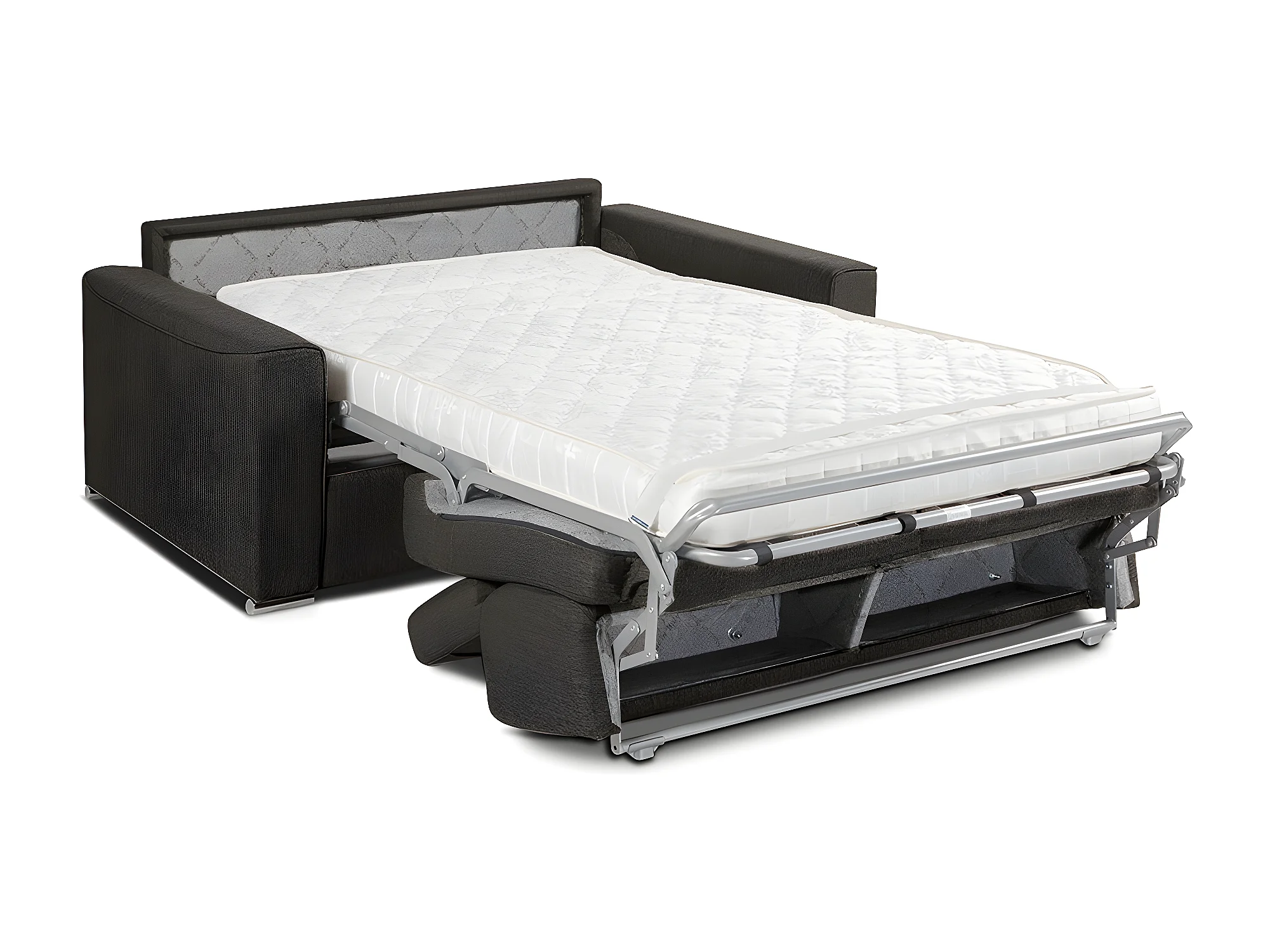 Canapé 2 places convertible express en tissu marron avec assise mémoire de forme - Couchage 120 cm - Matelas 14 cm mémoire de forme VIZIR