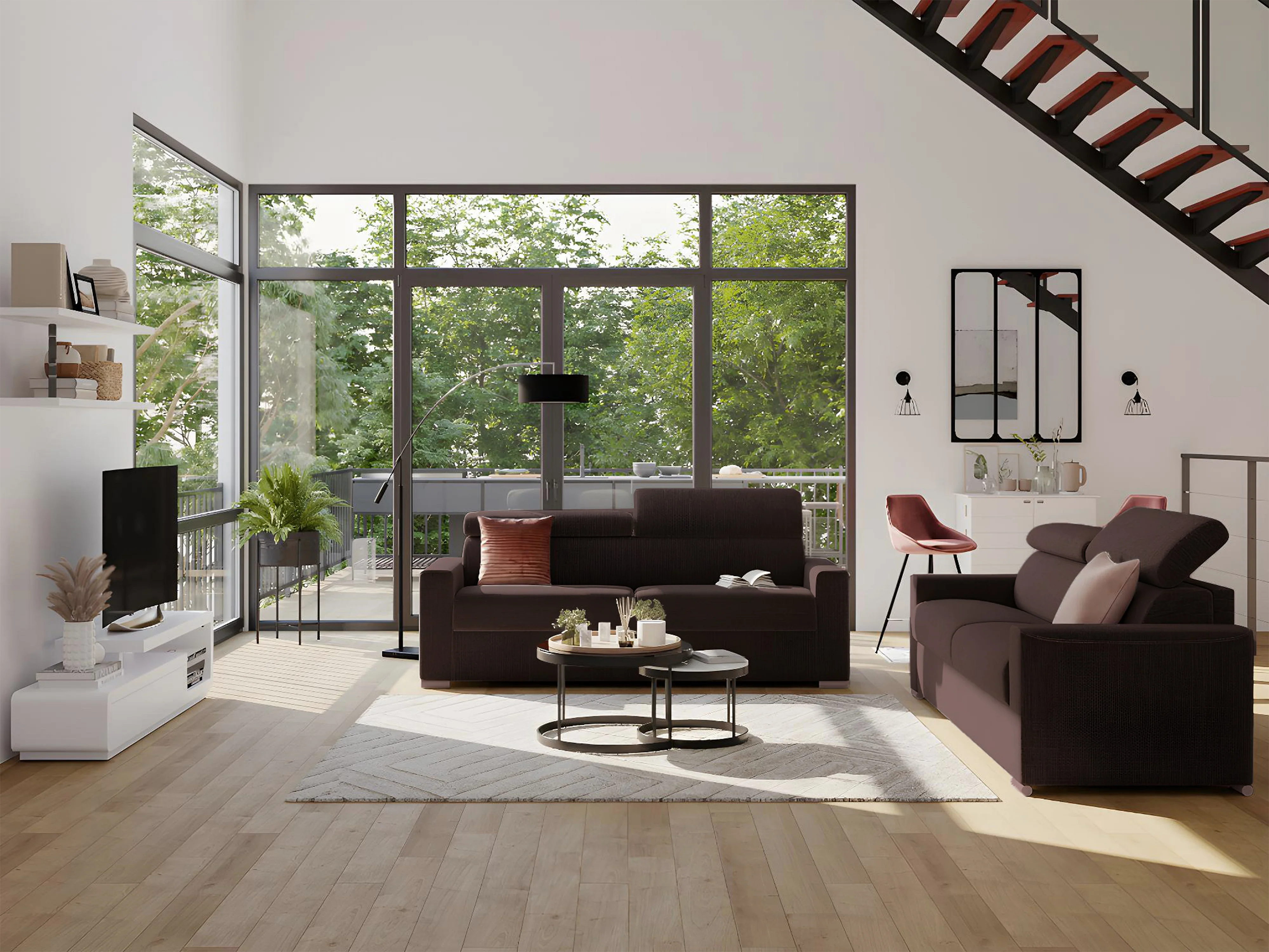 Canapé 3 places convertible express en tissu marron avec assise mémoire de forme - Couchage 140 cm - Matelas 14 cm VIZIR