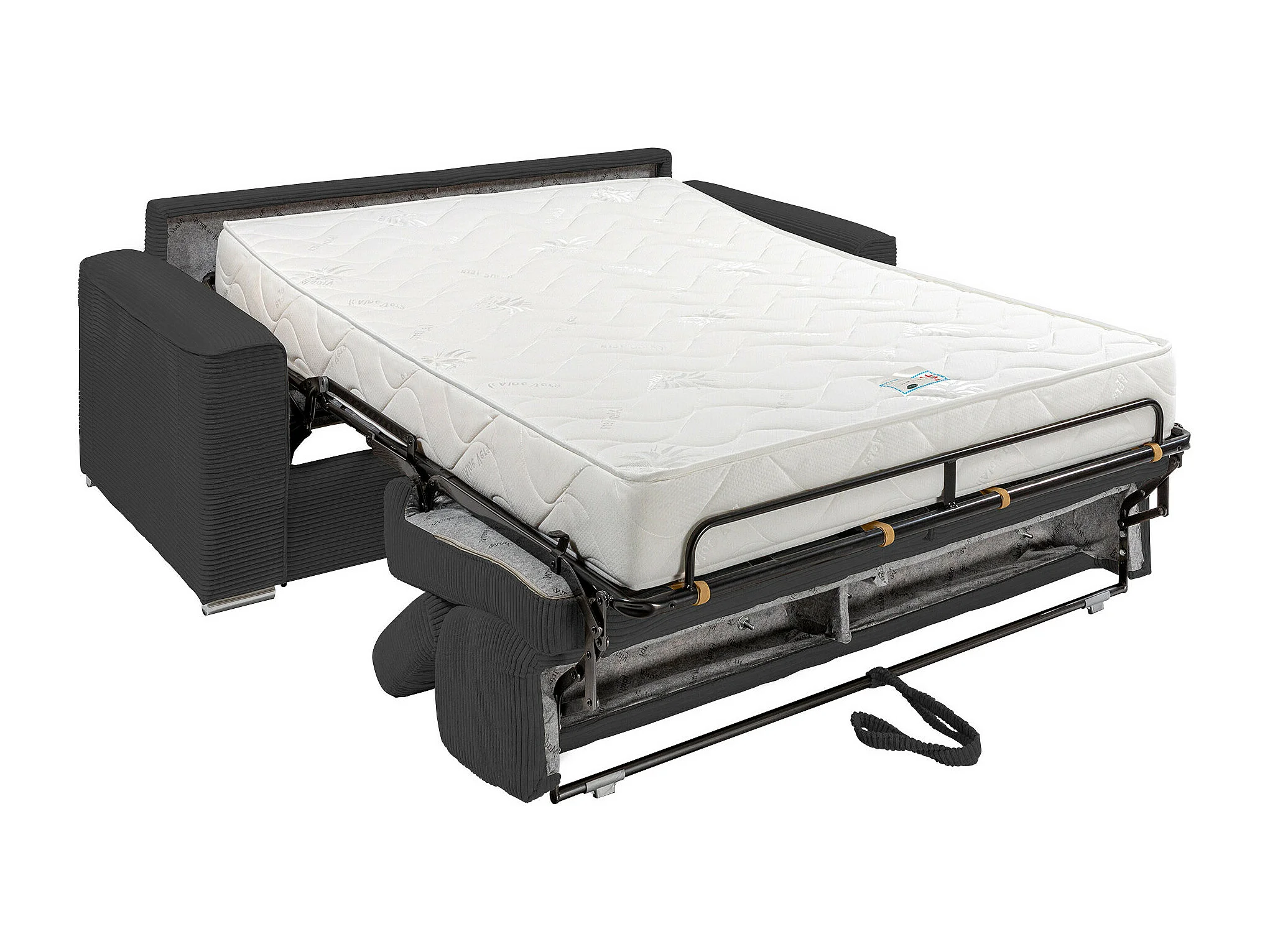 Canapé 3 places convertible express en velours côtelé gris avec assise mémoire de forme - Couchage 140 cm - Matelas 22 cm mémoire de forme VIZIR