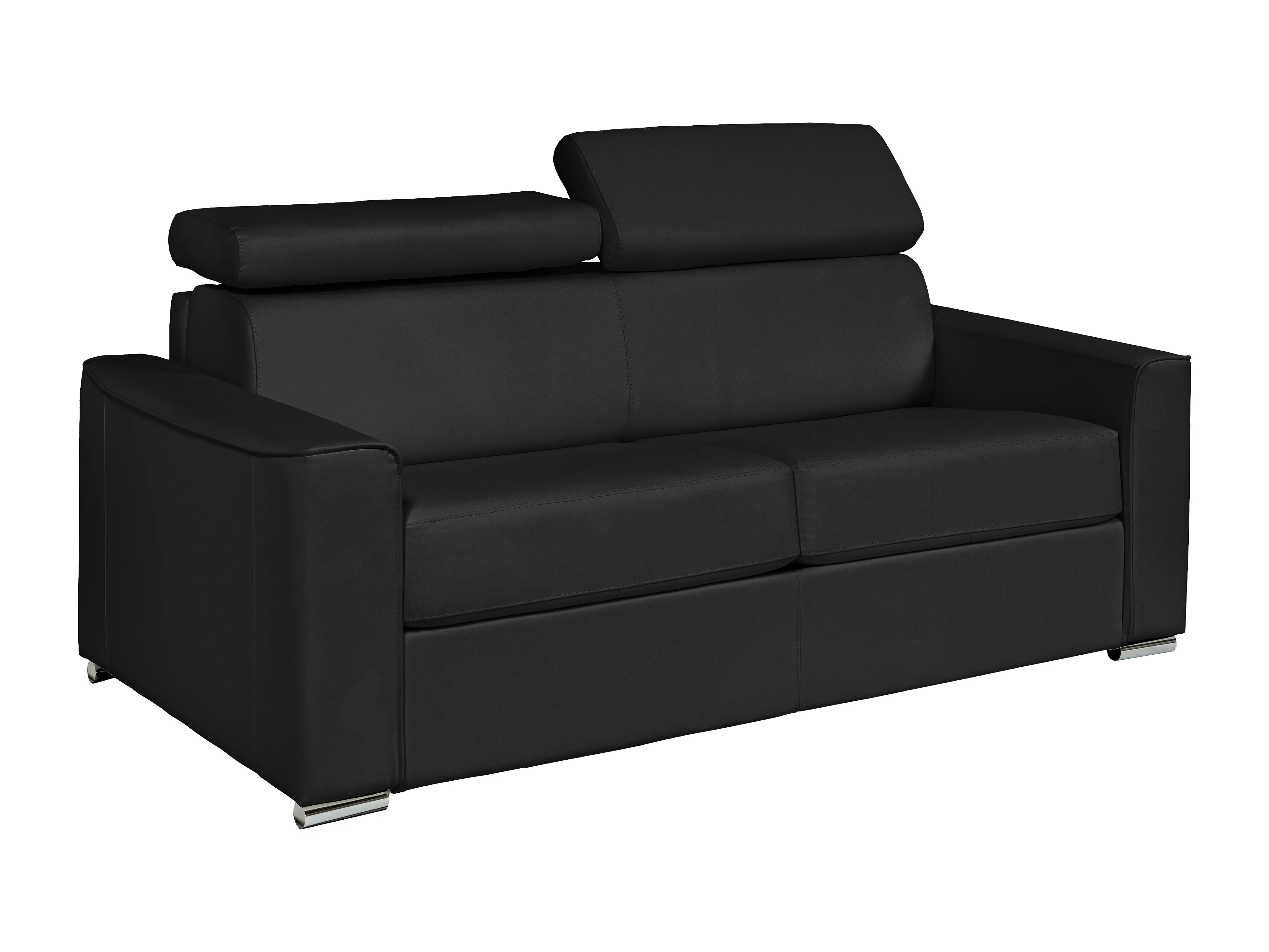 Canapé 4 places convertible express en cuir de buffle noir - Couchage 160 cm - Matelas 14 cm VIZIR