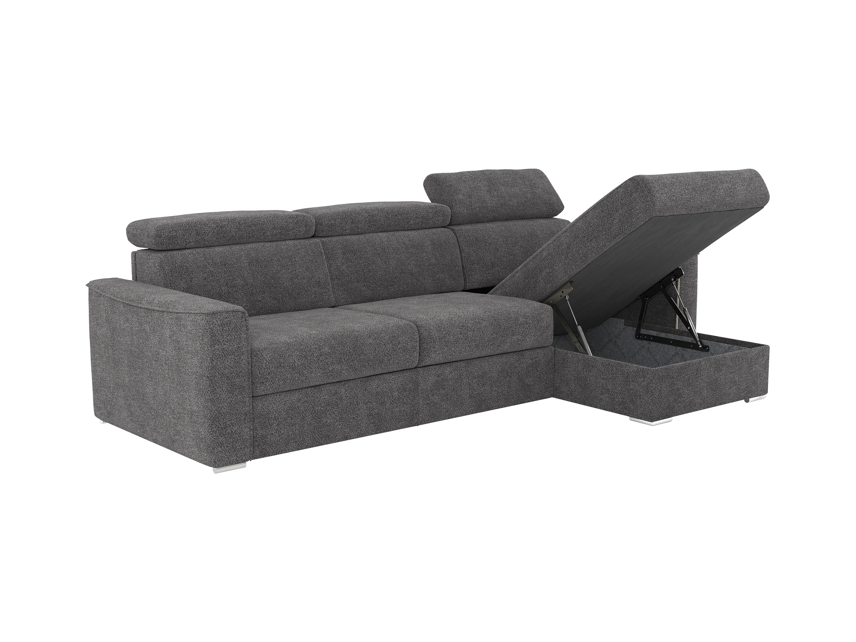 Canapé d'angle réversible convertible express en tissu chenille gris anthracite - Couchage 160 cm - Matelas 18 cm VIZIR