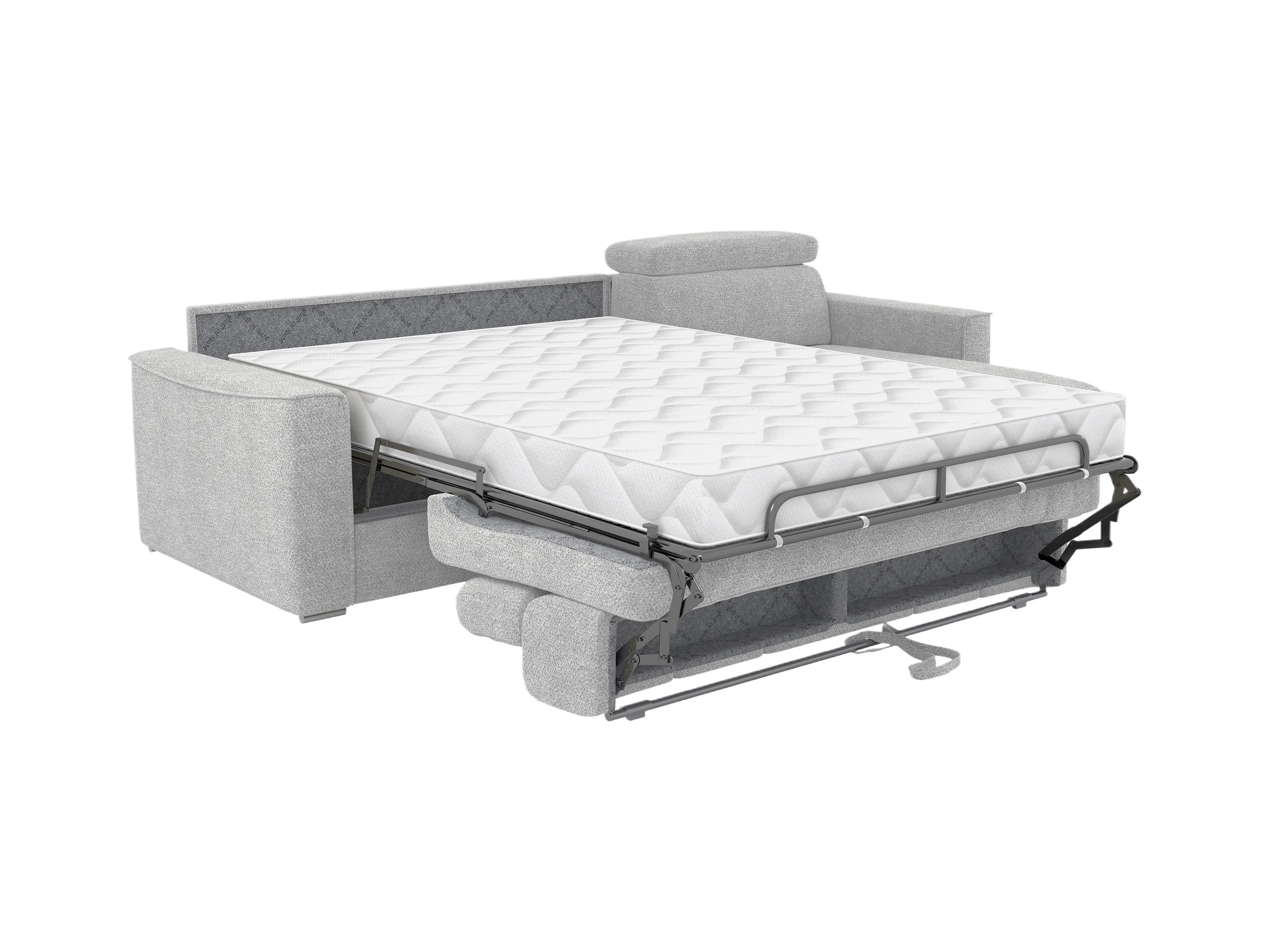 Canapé d'angle réversible convertible express en tissu chenille gris clair - Couchage 160 cm - Matelas 22 cm mémoire de forme VIZIR