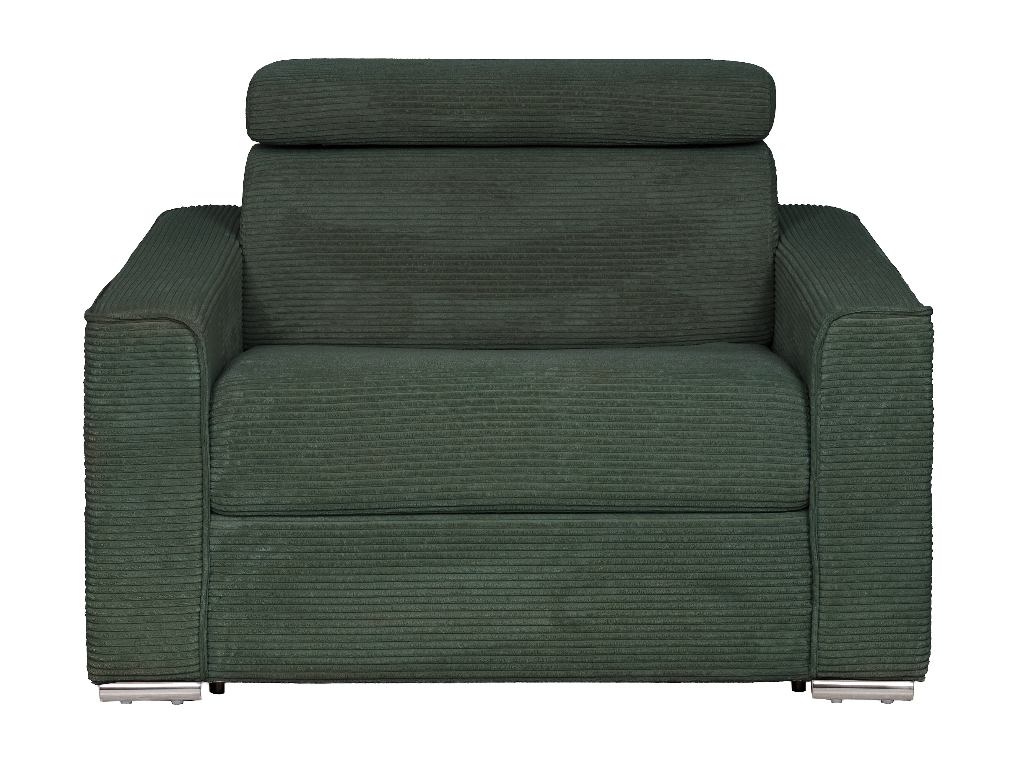 Fauteuil convertible express en velours côtelé vert sapin - Couchage à lattes larges 70 cm - Matelas 18 cm VIZIR