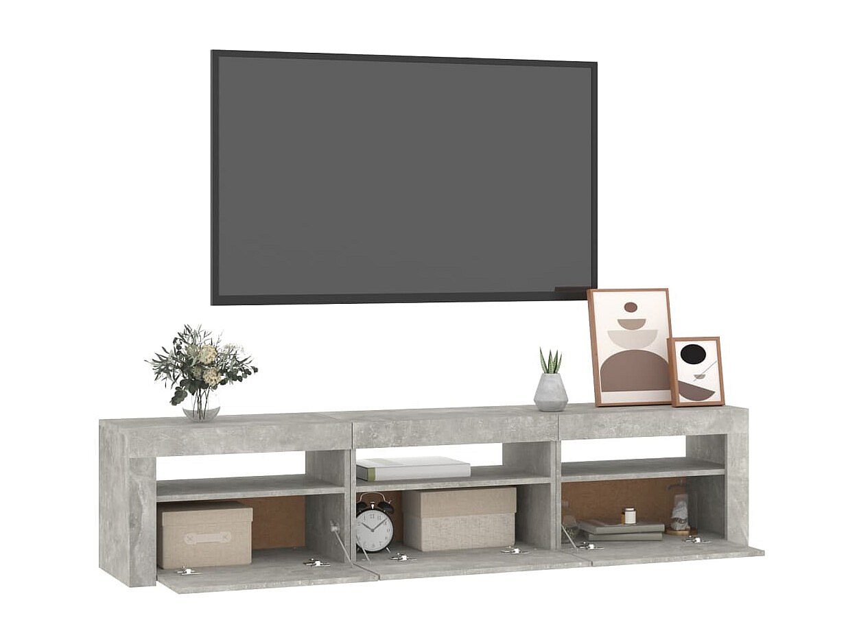 Vleteren Meuble TV avec lumières LED Gris béton 180x35x40 cm