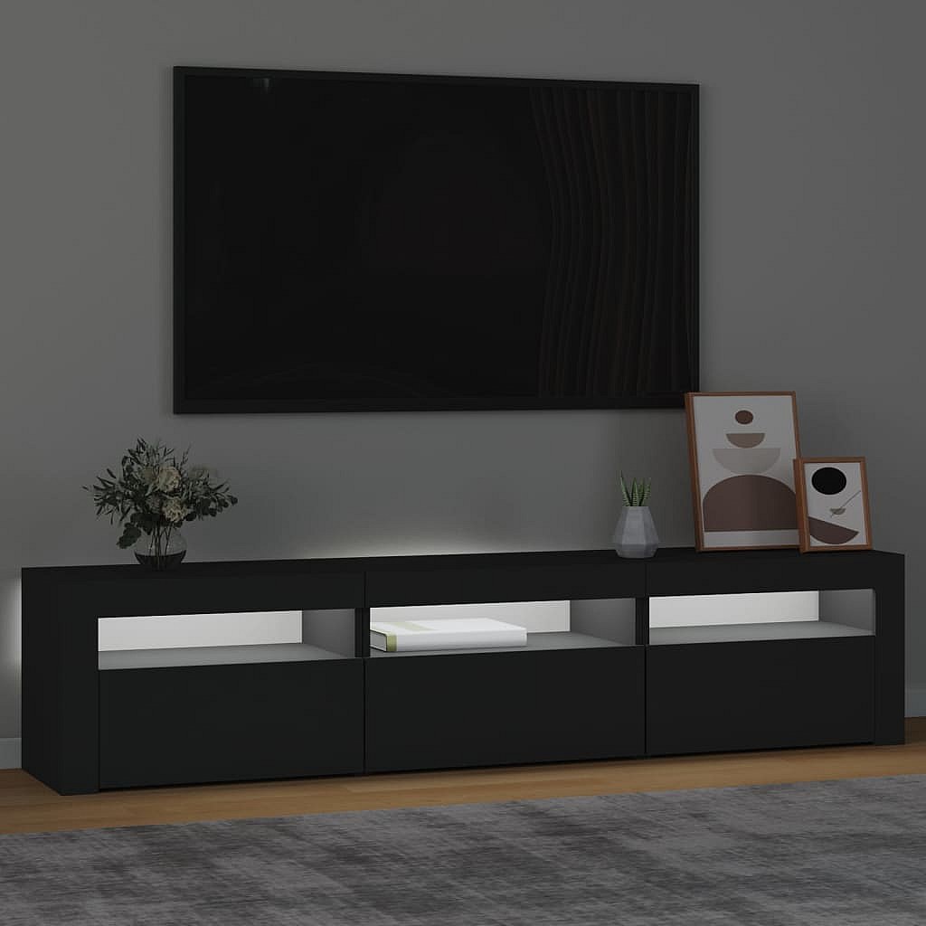 Vleteren Meuble TV avec lumières LED Noir 180x35x40 cm