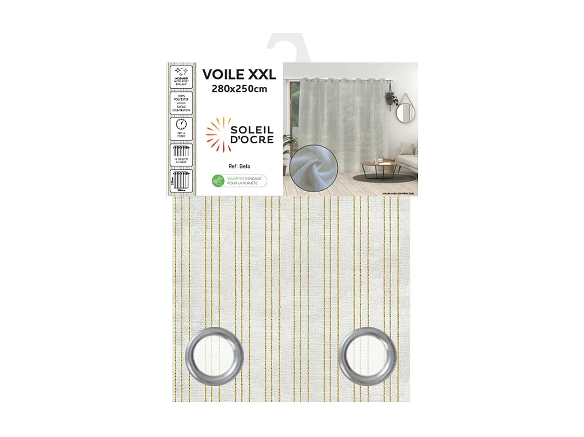 Voilage à oeillets baie vitrée 280x250 cm BELLA or, par Soleil d'ocre