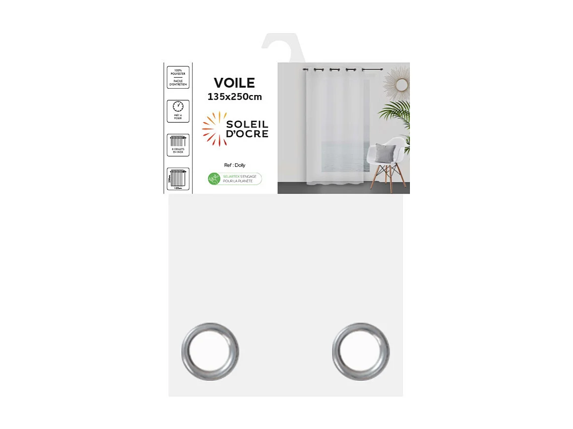 Voile à oeillets 135x250 cm DOLLY blanc, par Soleil d'ocre