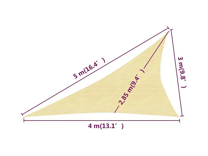 Voile d'ombrage 160 g-m² Beige 3x4x5 m PEHD