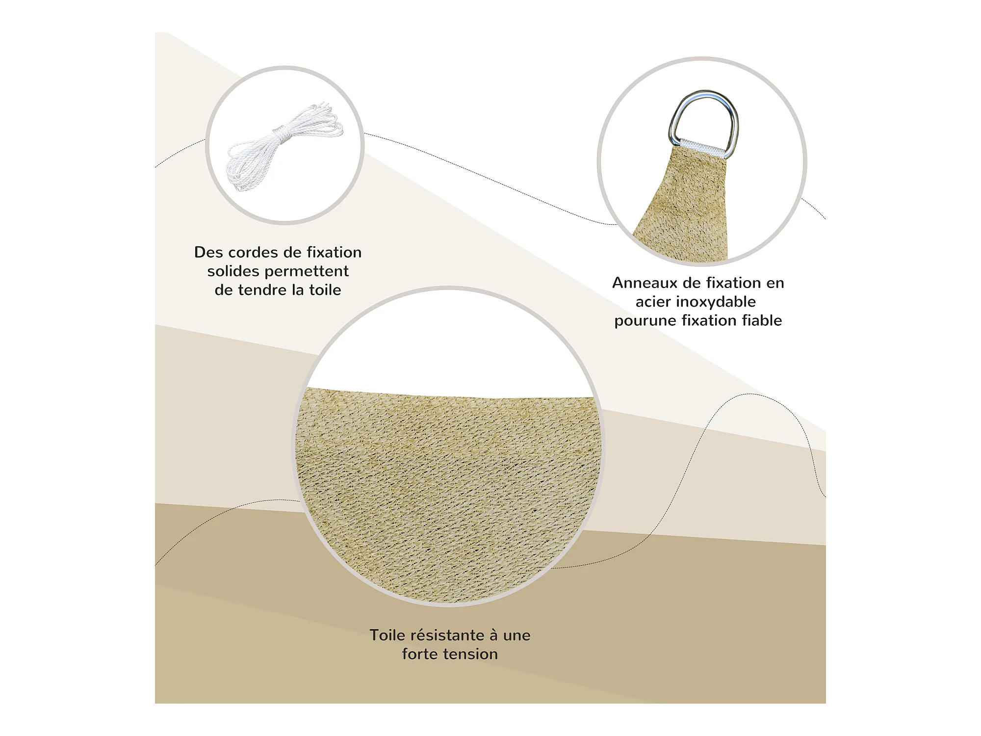Voile d'ombrage carré 3 x 3 m polyéthylène haute densité résistant aux UV coloris sable