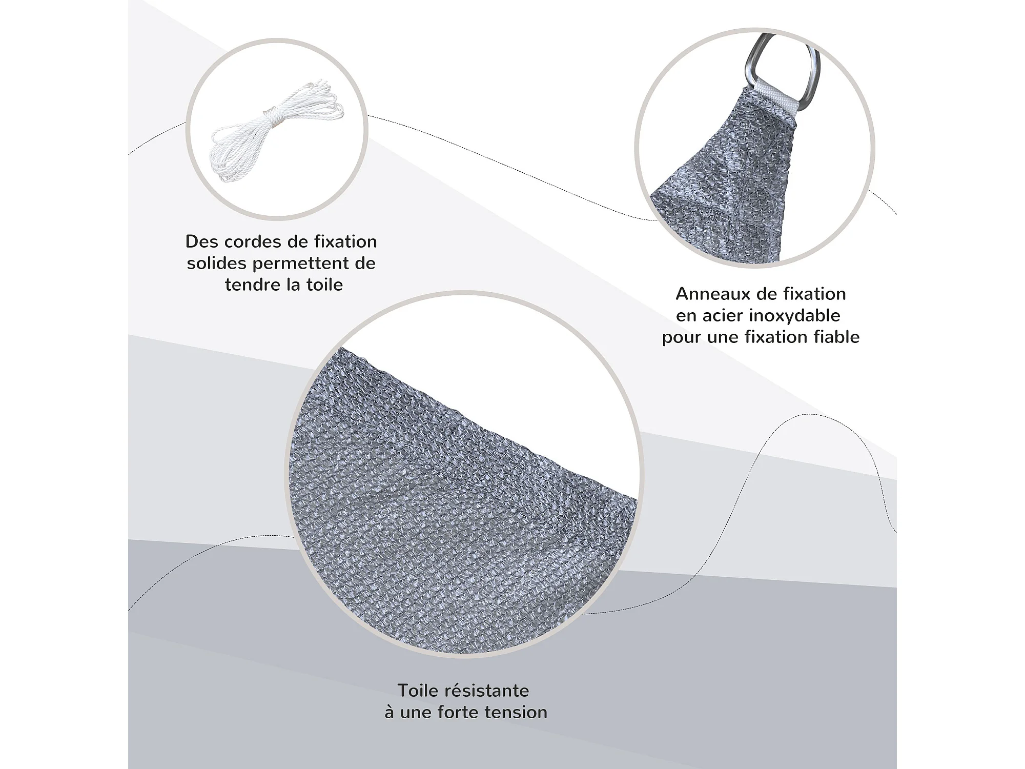 Voile d'ombrage rectangulaire 6L x 4l m HDPE gris