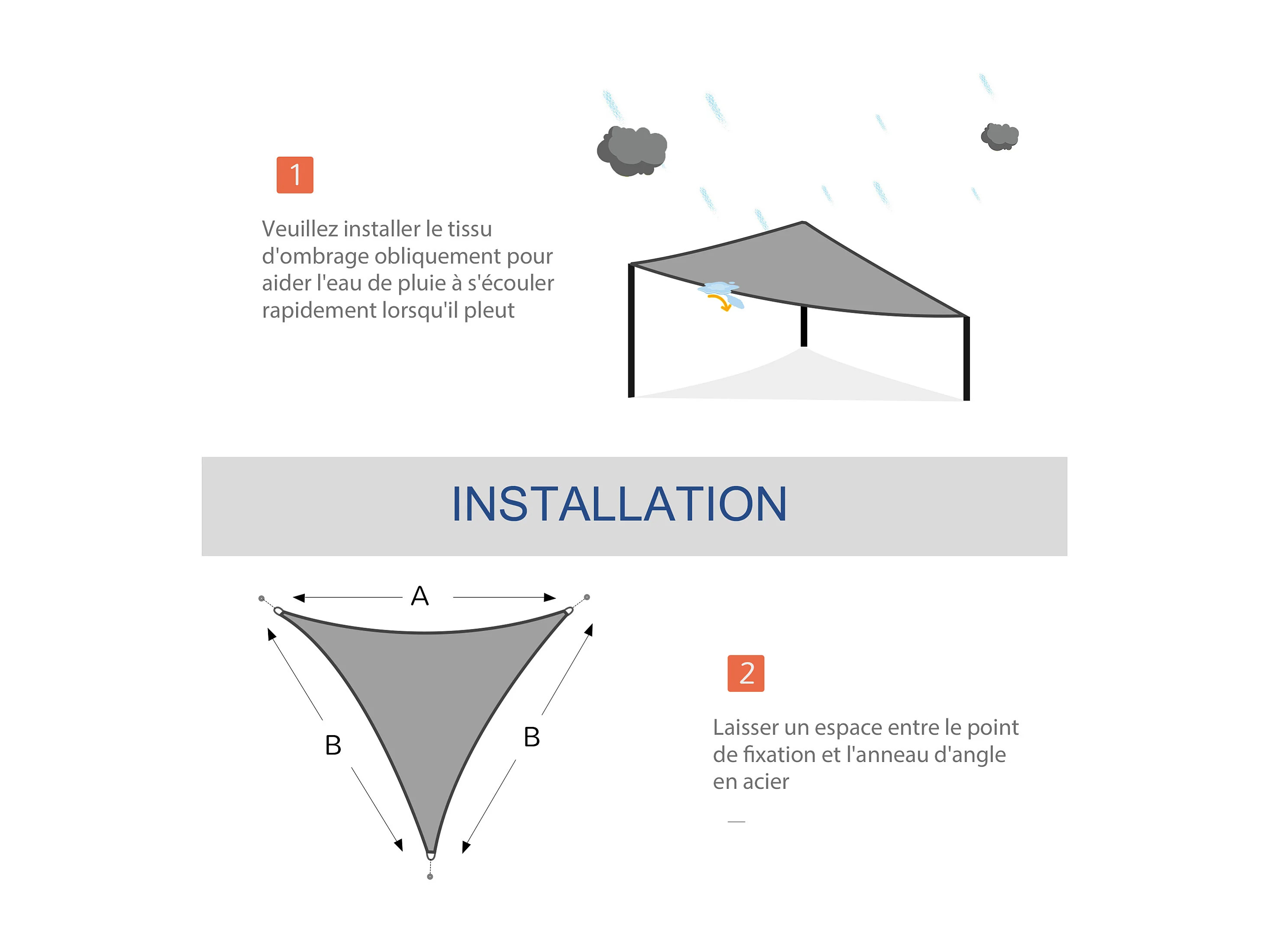 Voile d'ombrage triangulaire grande taille 4 x 4 x 4 m polyester imperméabilisé haute densité 160 g/m² gris