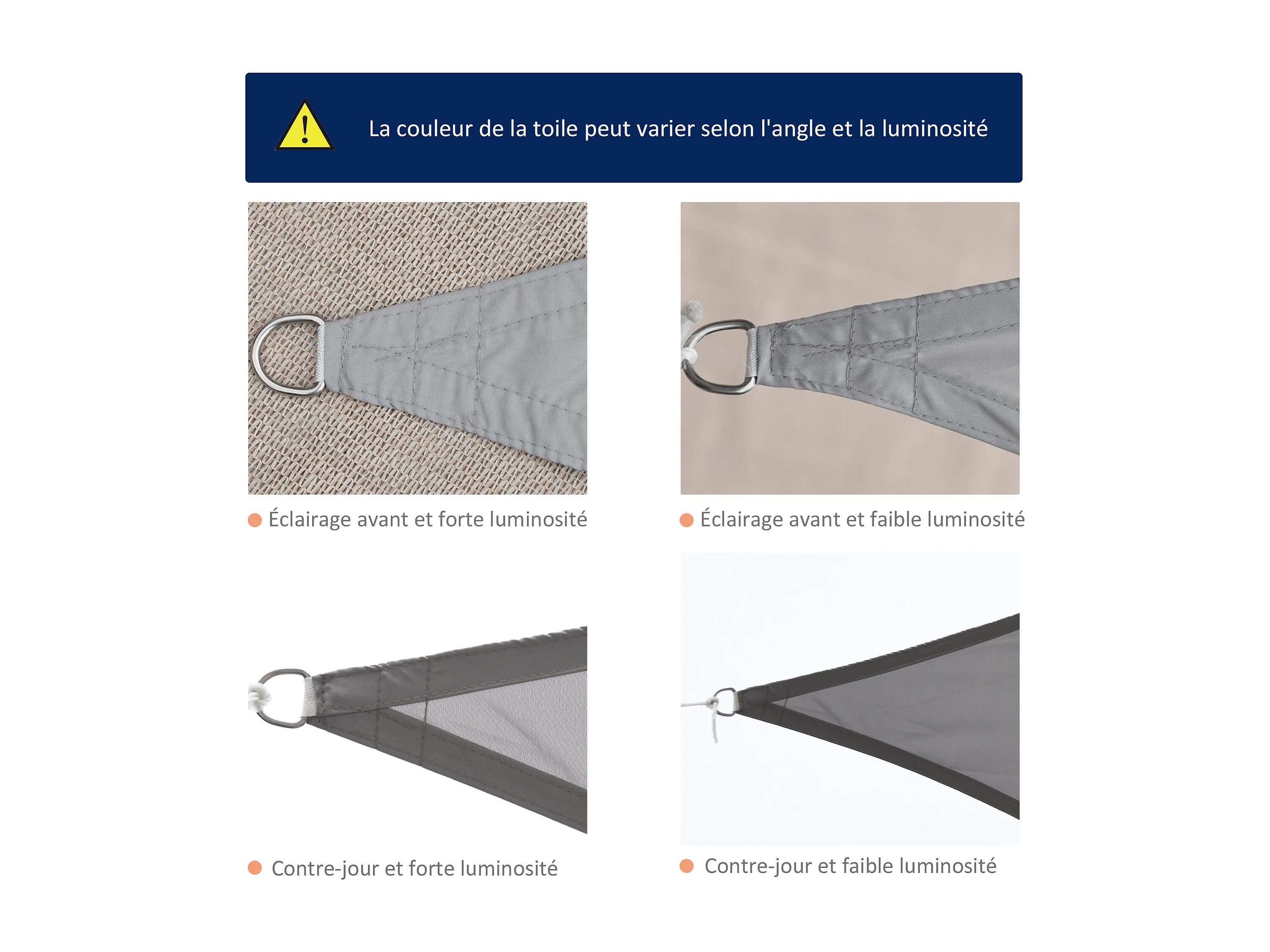 Voile d'ombrage triangulaire grande taille 6 x 6 x 6 m polyester imperméabilisé haute densité 160 g/m² gris clair