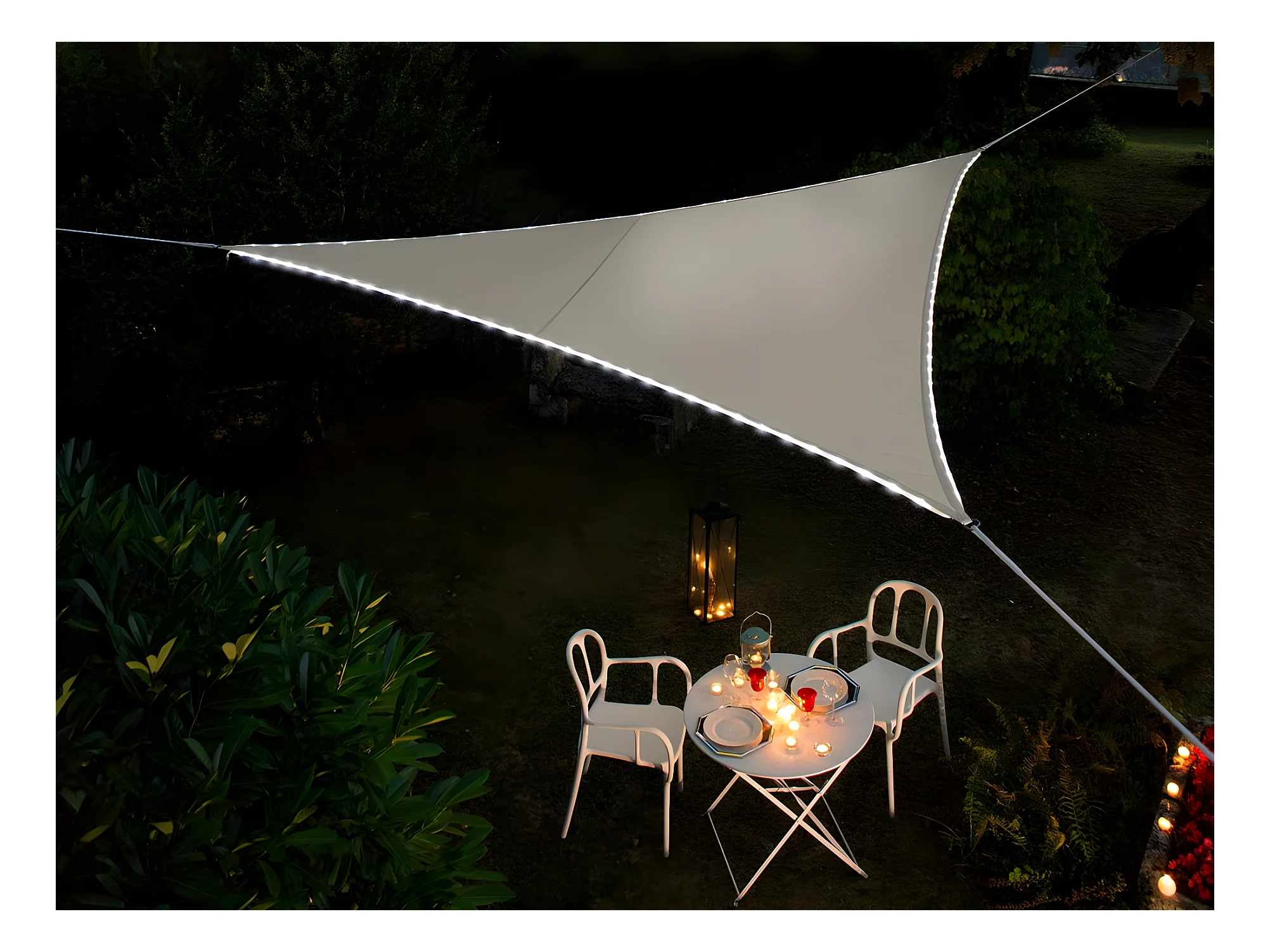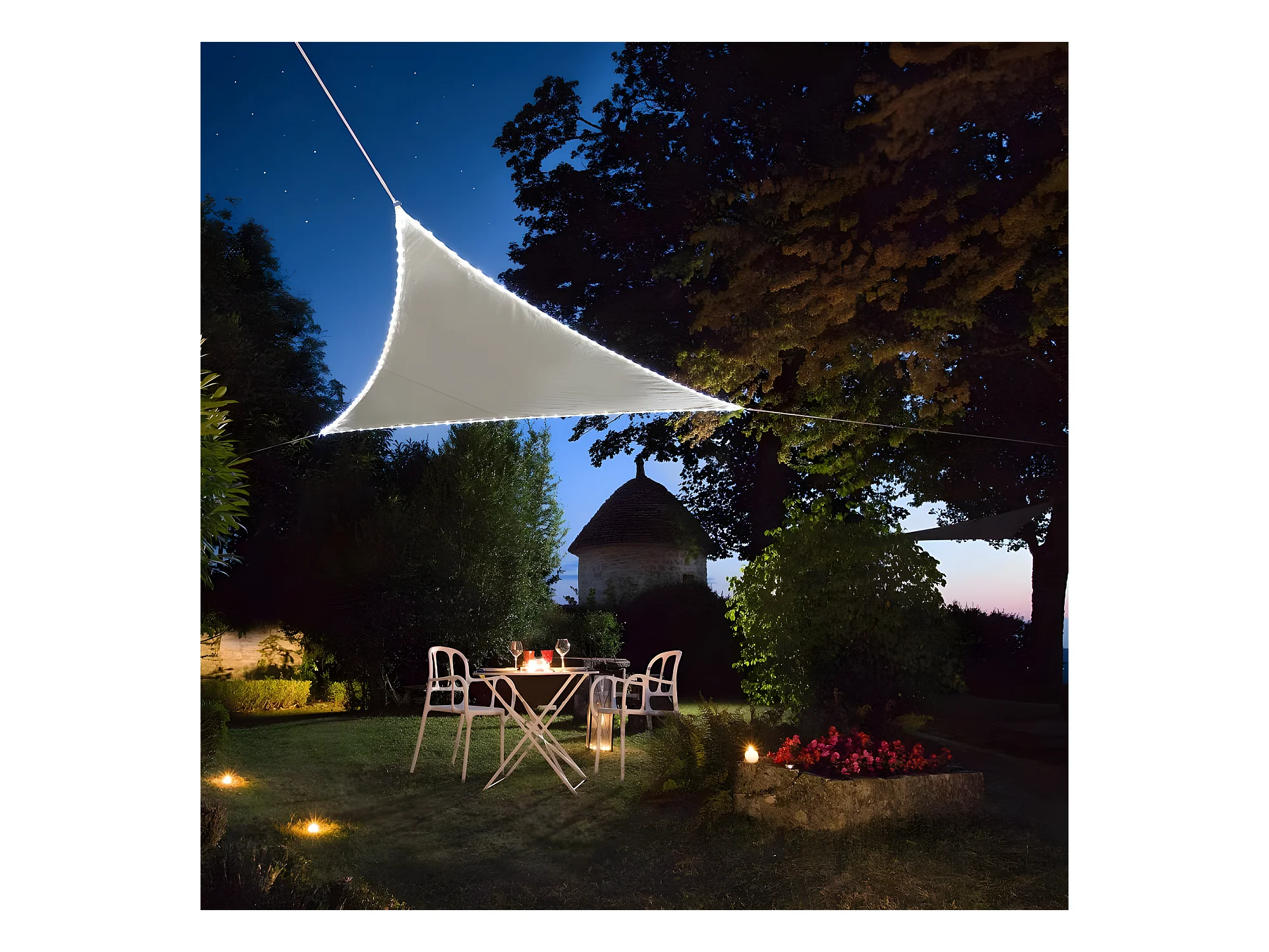 Voile d'ombrage triangulaire Leds solaires 3,60 x 3,60 x 3,60 m Taupe - Jardiline