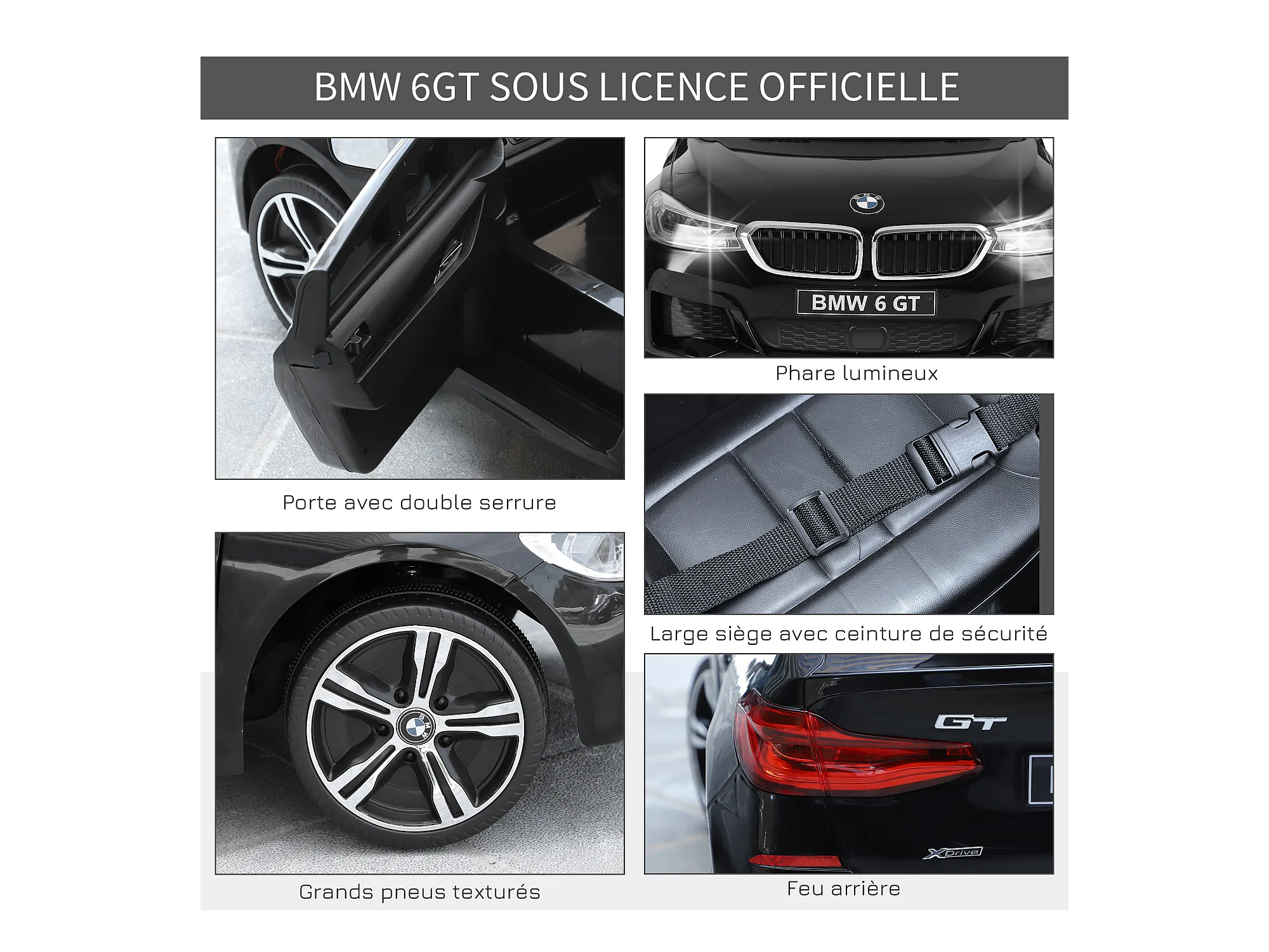 Voiture électrique enfants 6 V 3 Km/h max. effets sonores et lumineux télécommande incluse noir BMW 6 GT