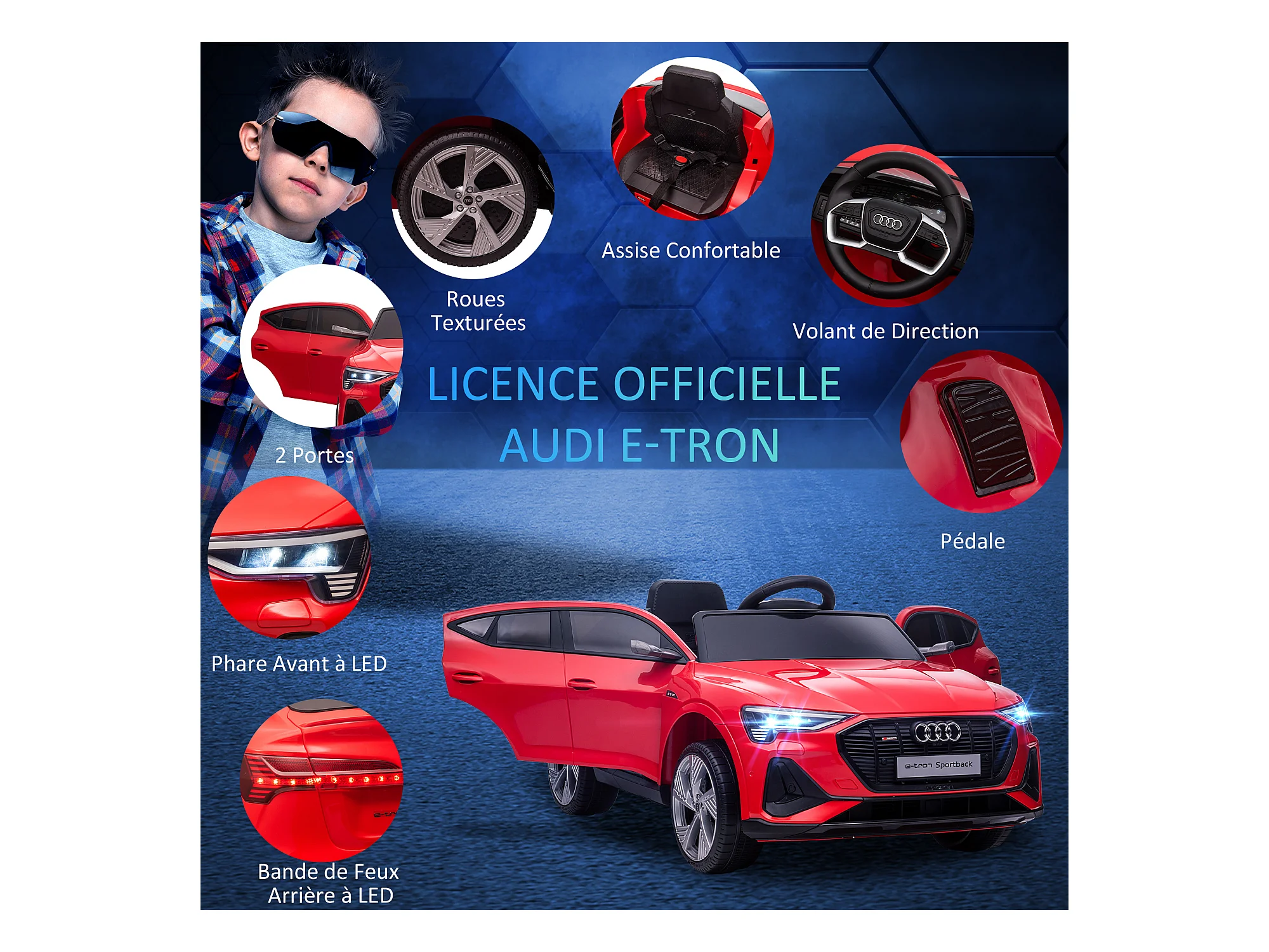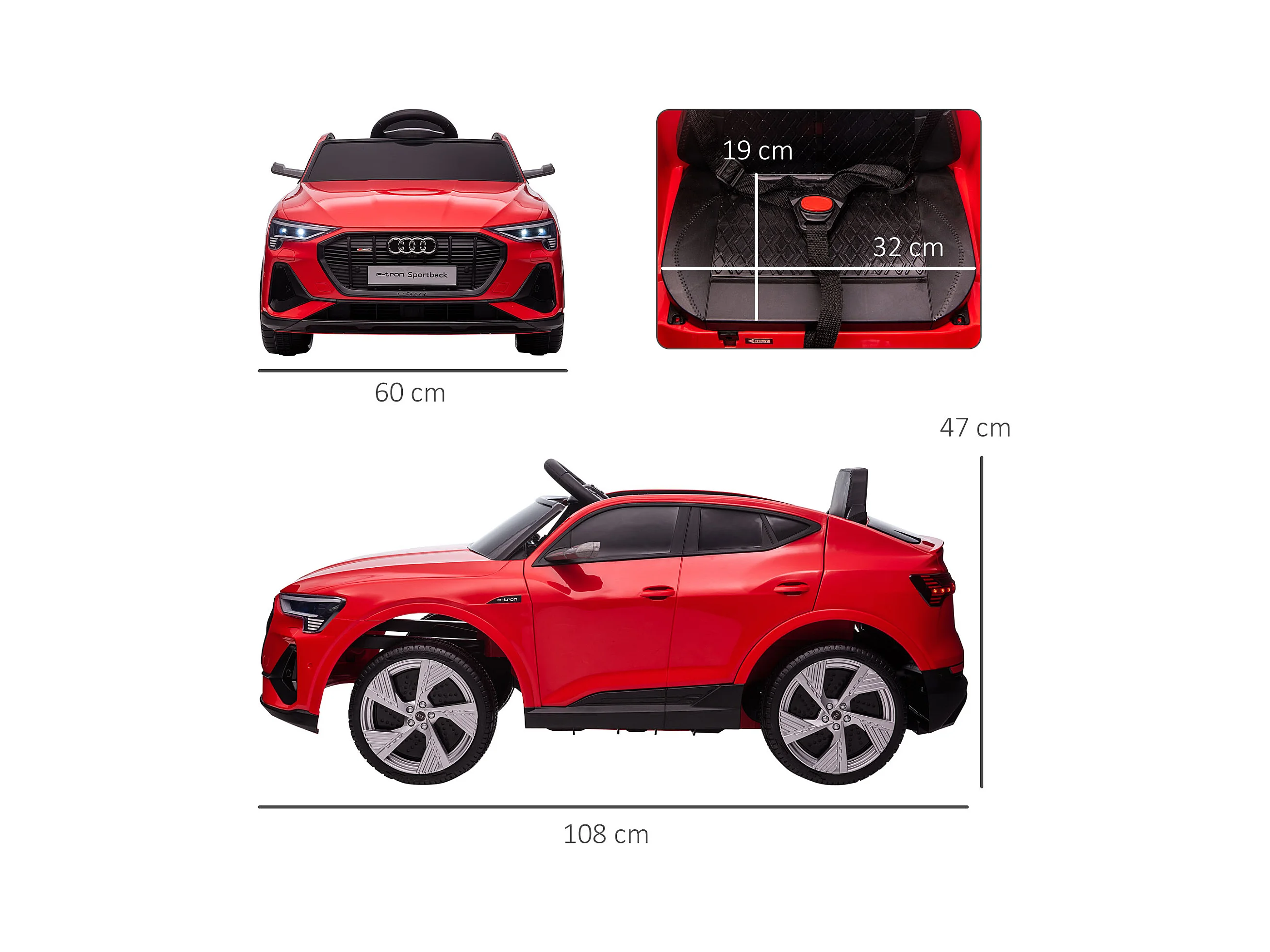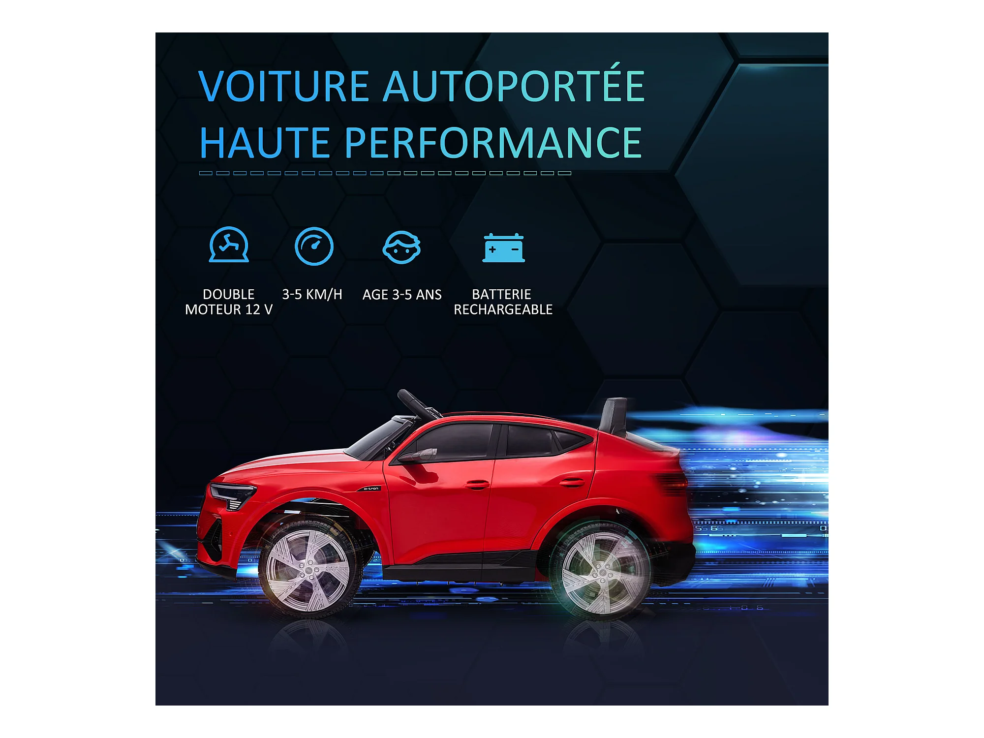 Voiture véhicule électrique enfant e-tron Sportback S line 12 V - V. max. 8 Km/h - effets sonores, lumineux - télécommande, port USB, MP3 - rouge