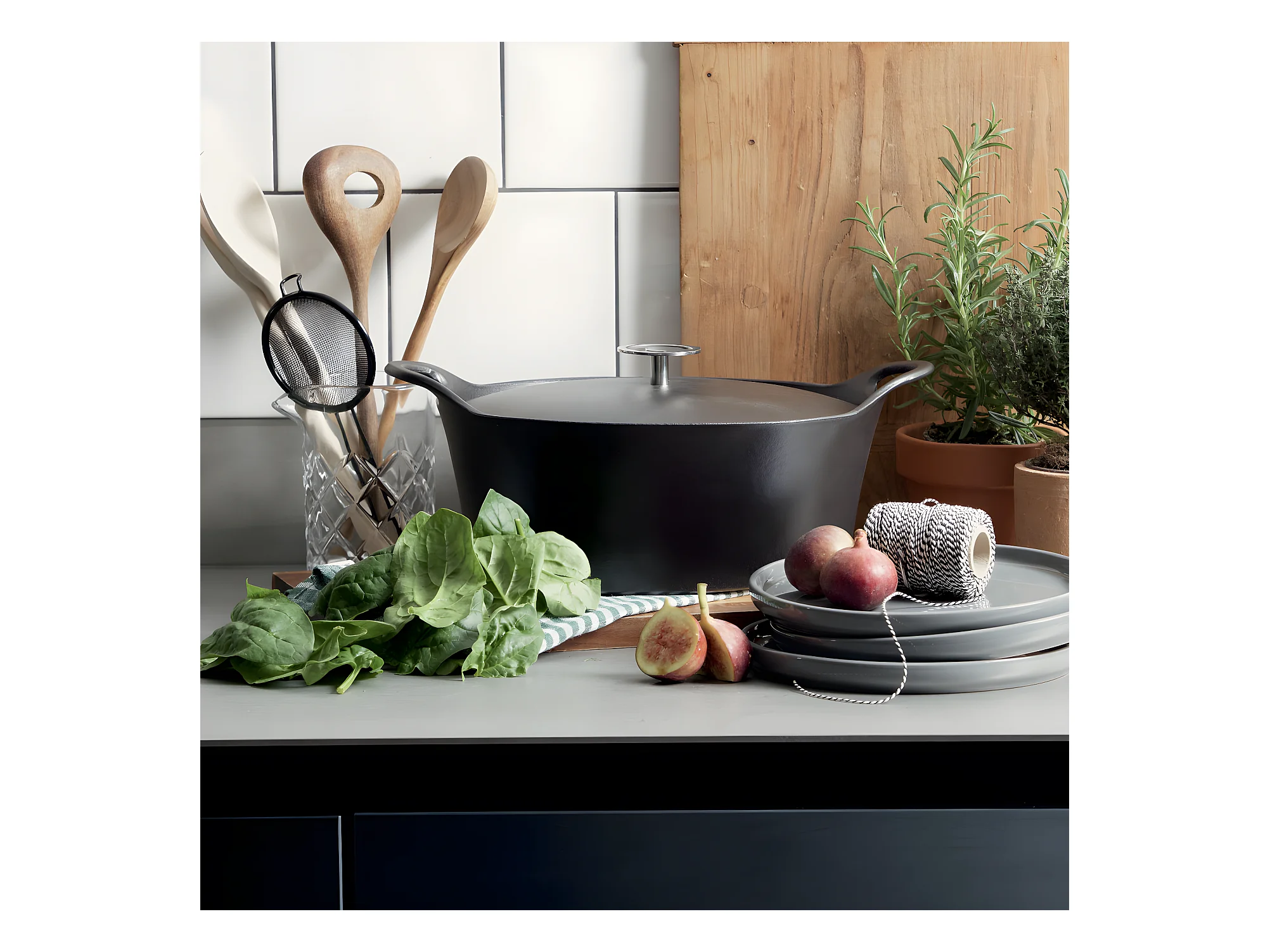 Volcan - Cocotte ovale 29cm fonte de fer émaillée noire avec couvercle