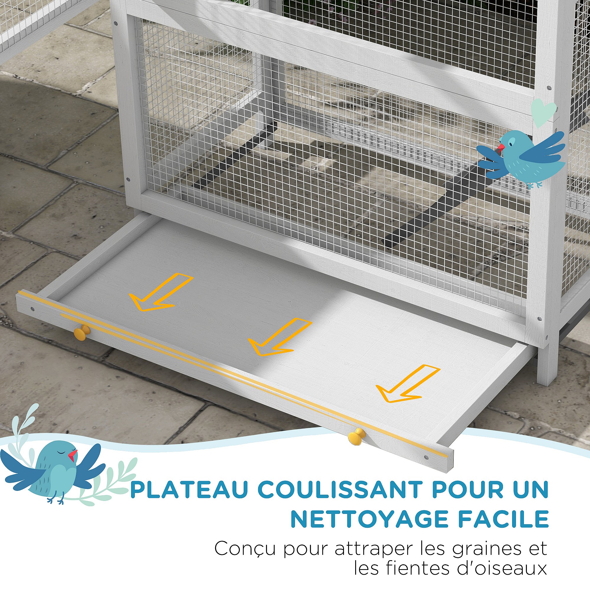 Cage à oiseaux volière grande taille 2 portes toit asphalte tiroir amovible bois gris