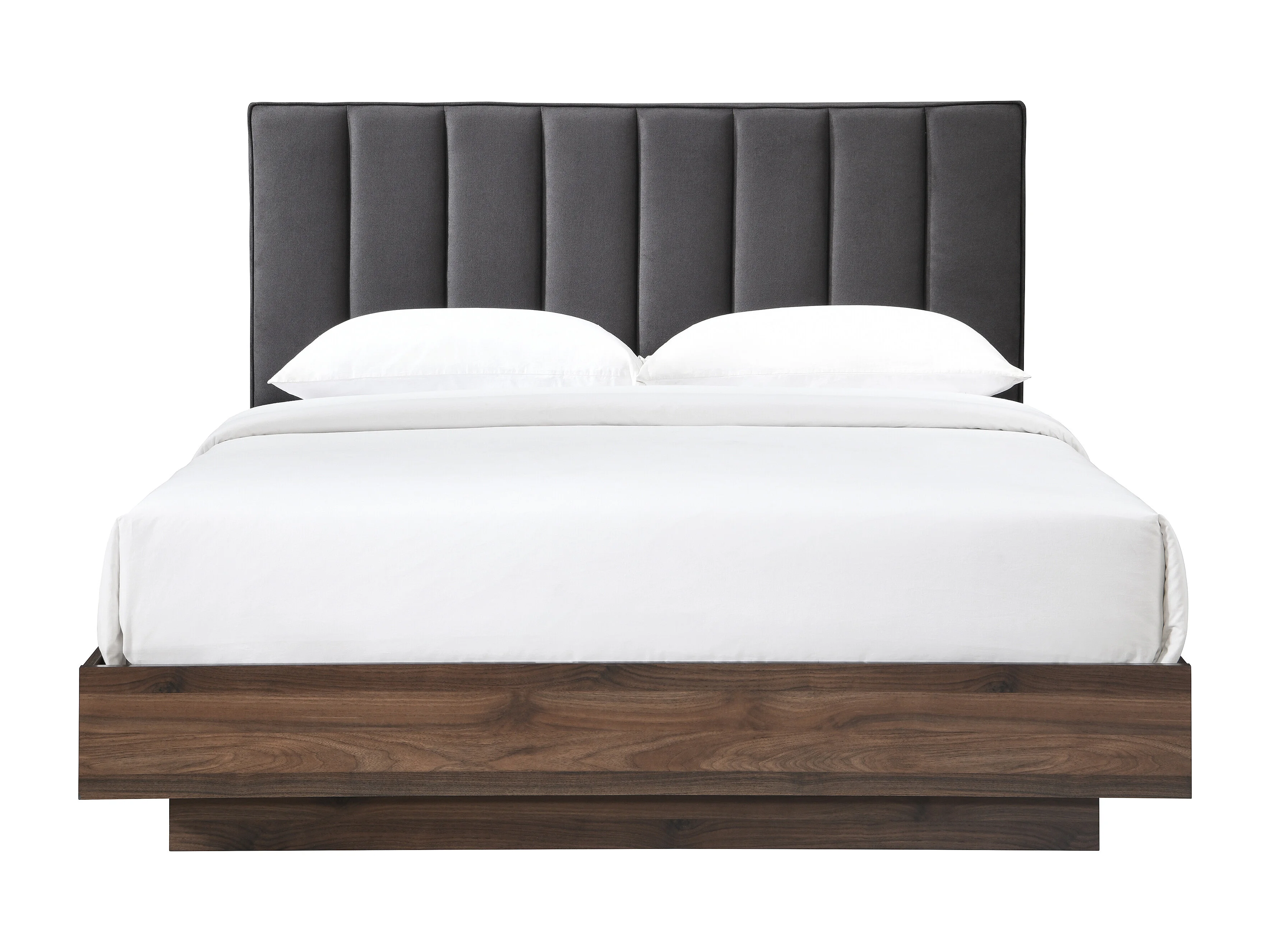 Lit 160 x 200 cm avec tête de lit en tissu – Gris et naturel foncé + Matelas – VONYLA