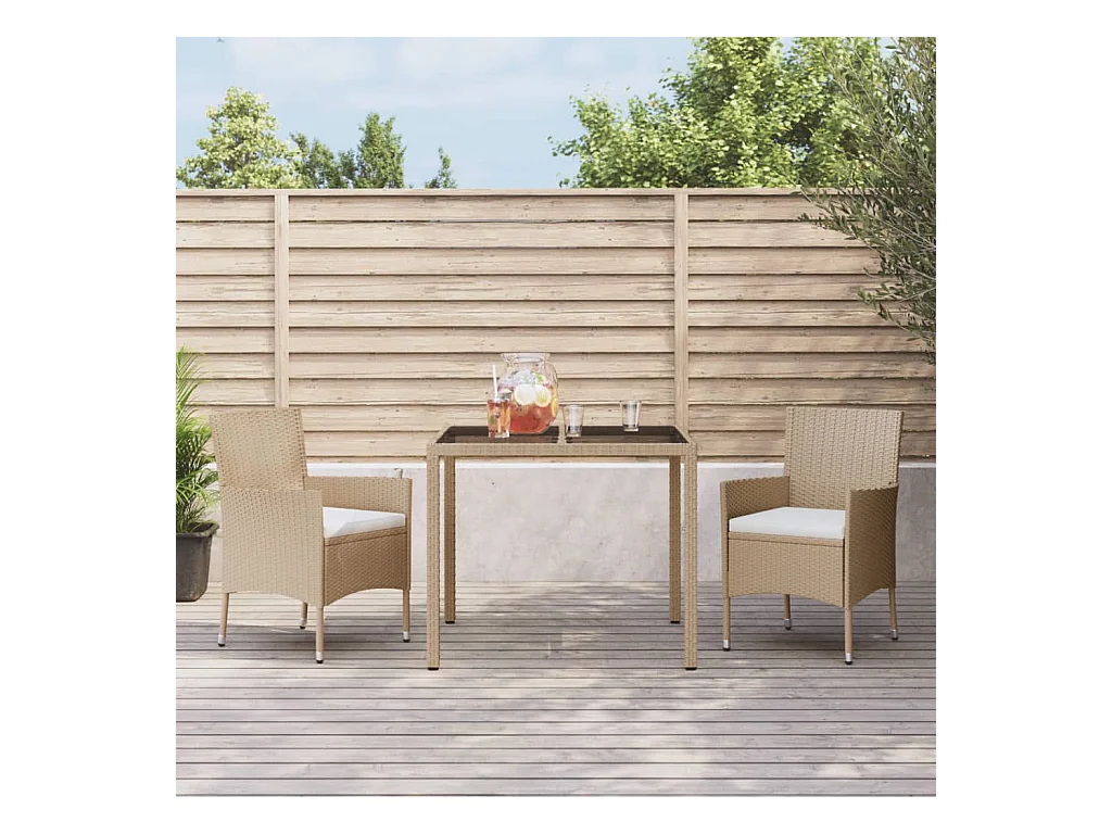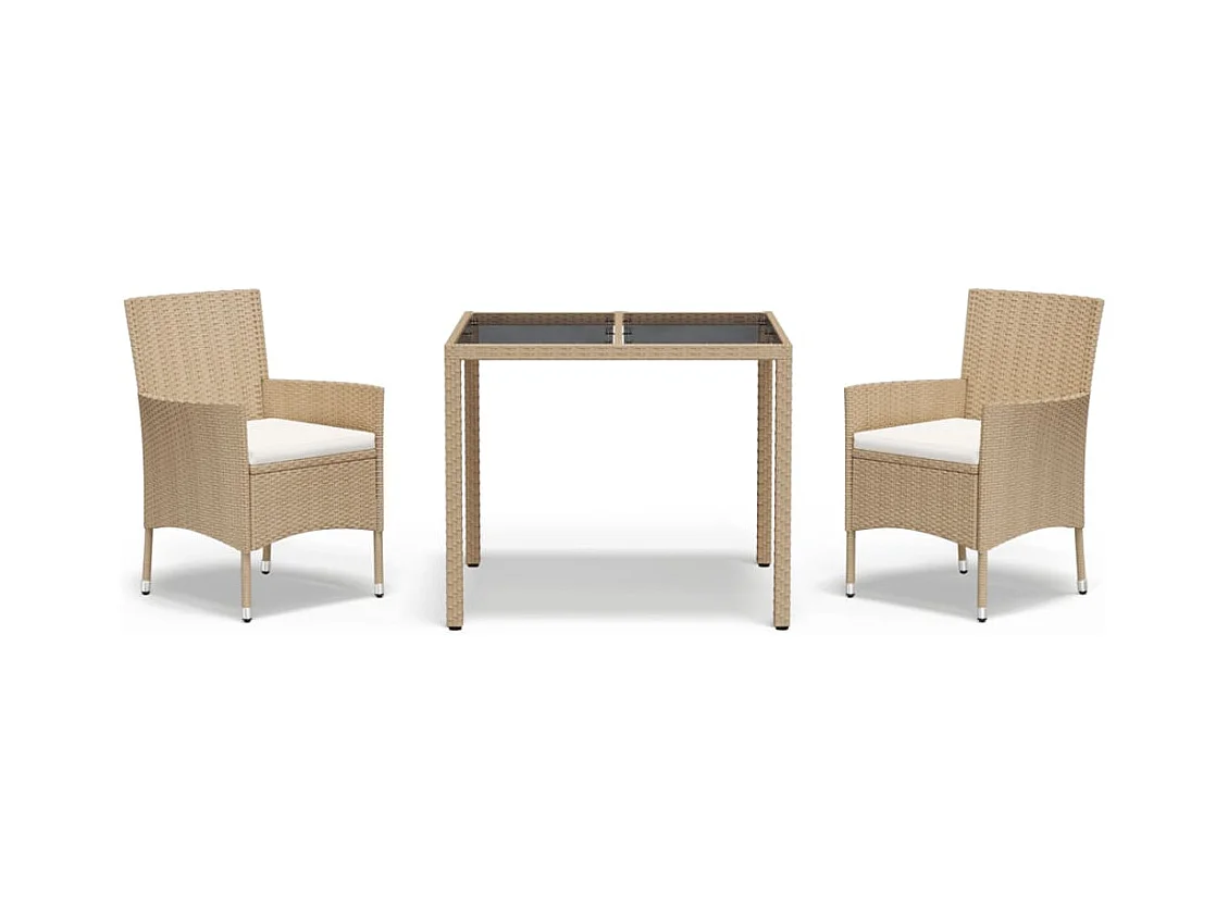 Vordingborg Ensemble à manger de jardin et coussins 3 pcs Beige poly rotin