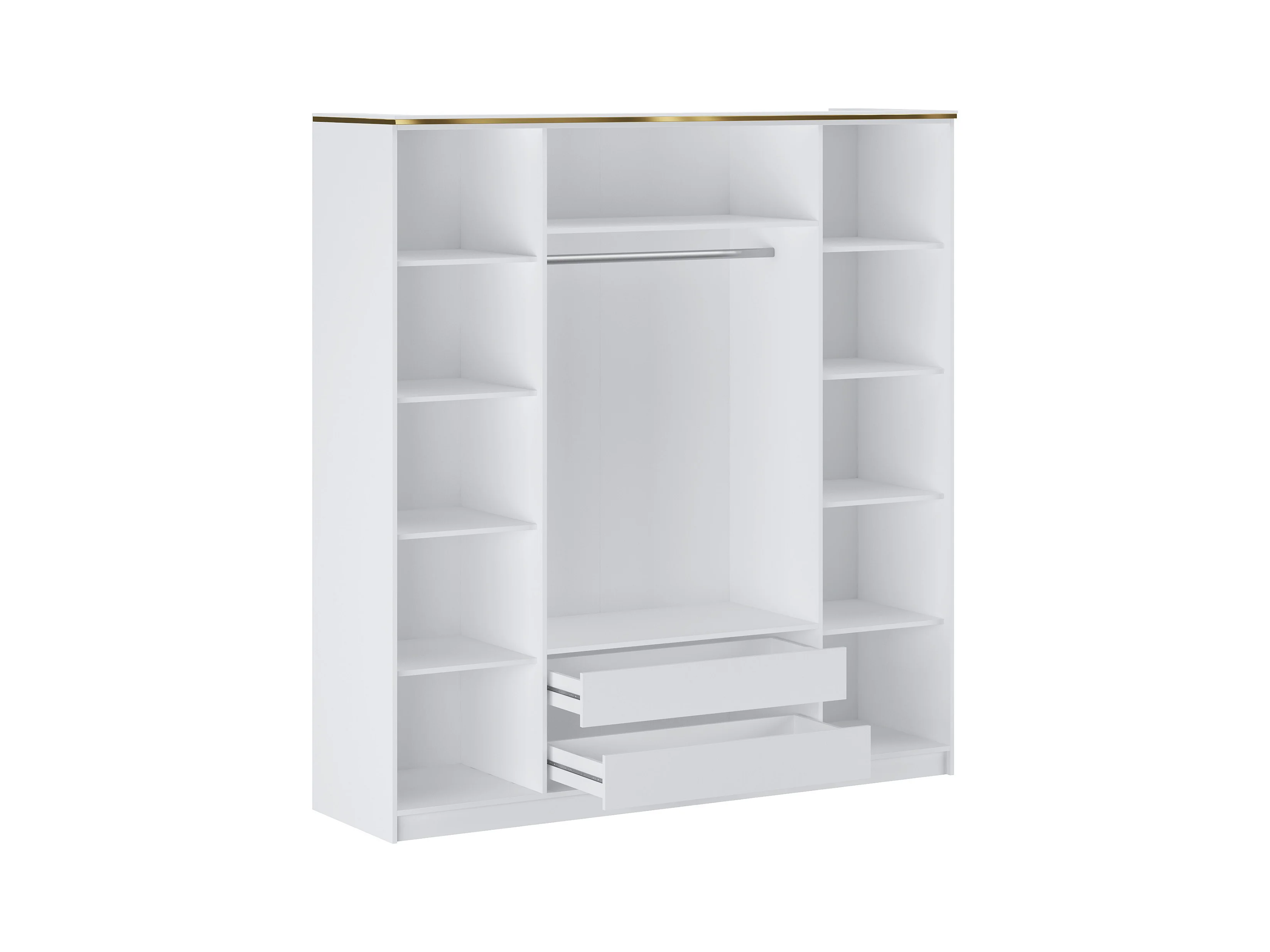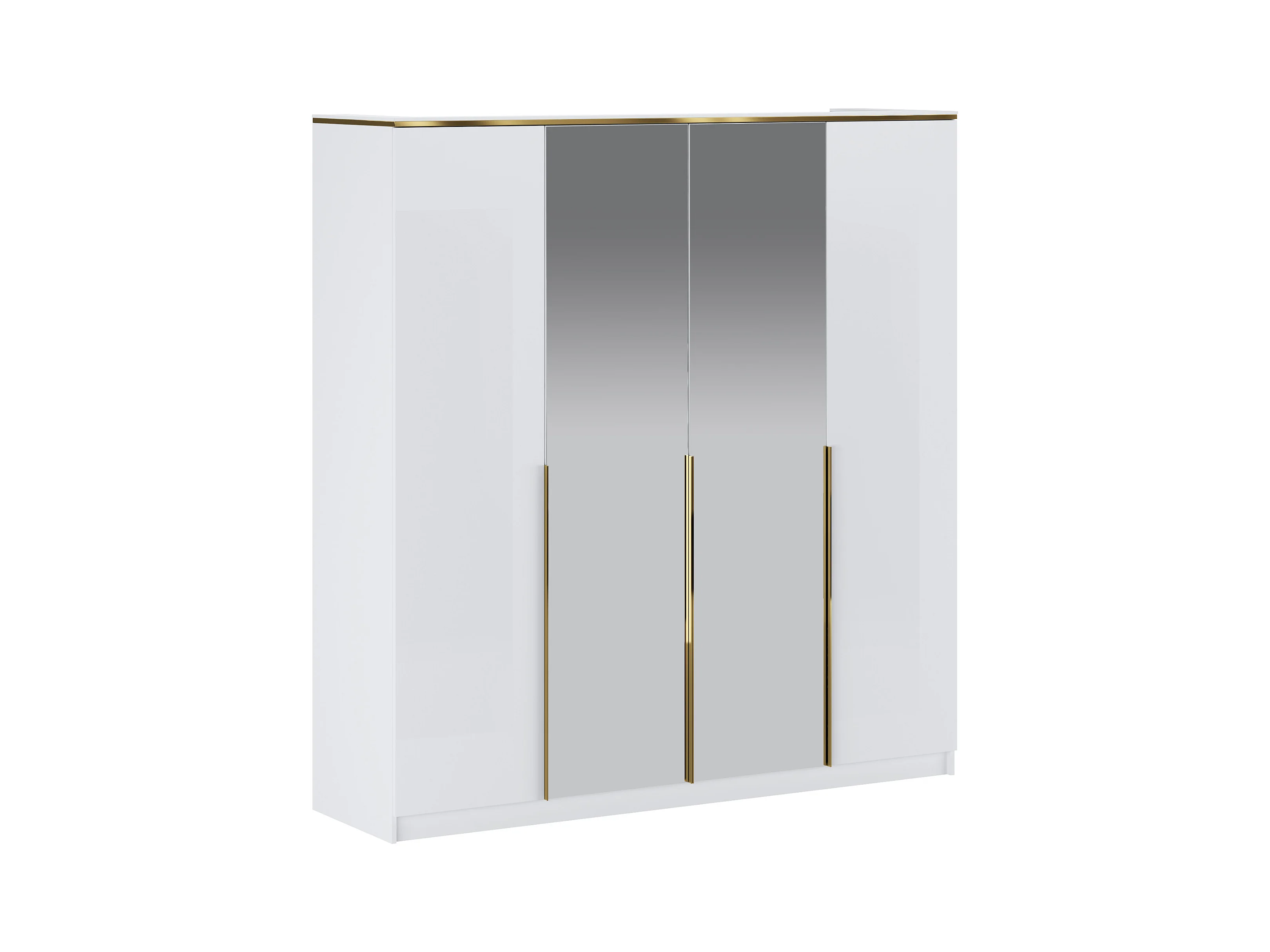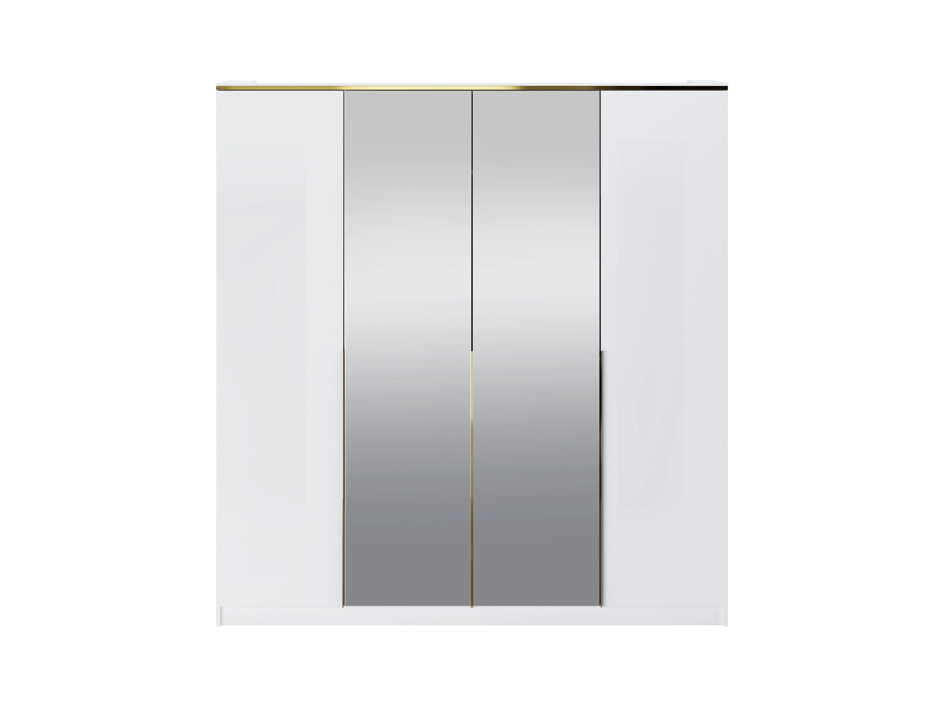 Armoire 4 portes - Avec miroirs - L200 cm - Blanc brillant et Doré - VUKIA de Pascal Morabito