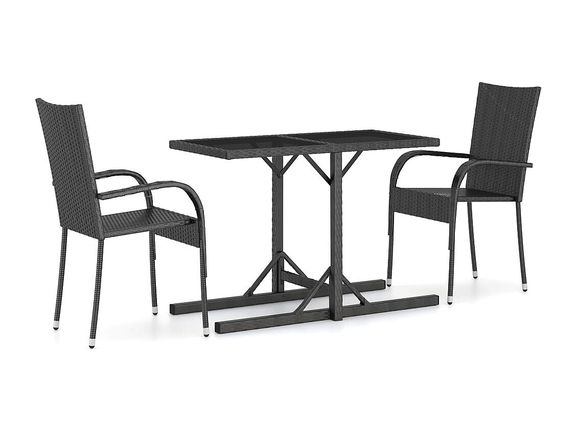 Vyrisa Ensemble à manger de jardin 3 pcs Noir