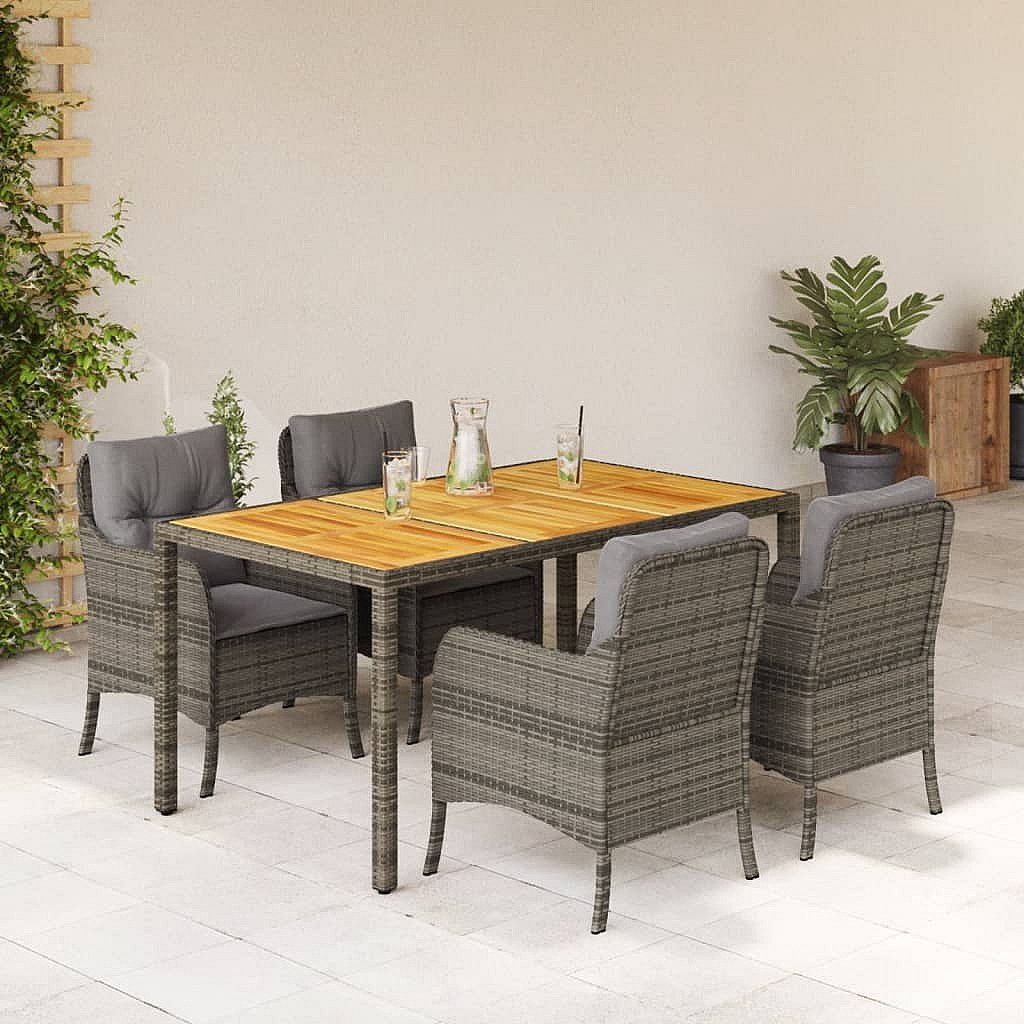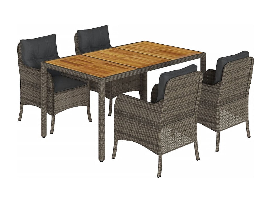 Waalre Ensemble à manger de jardin 5 pcs coussins gris résine tressée