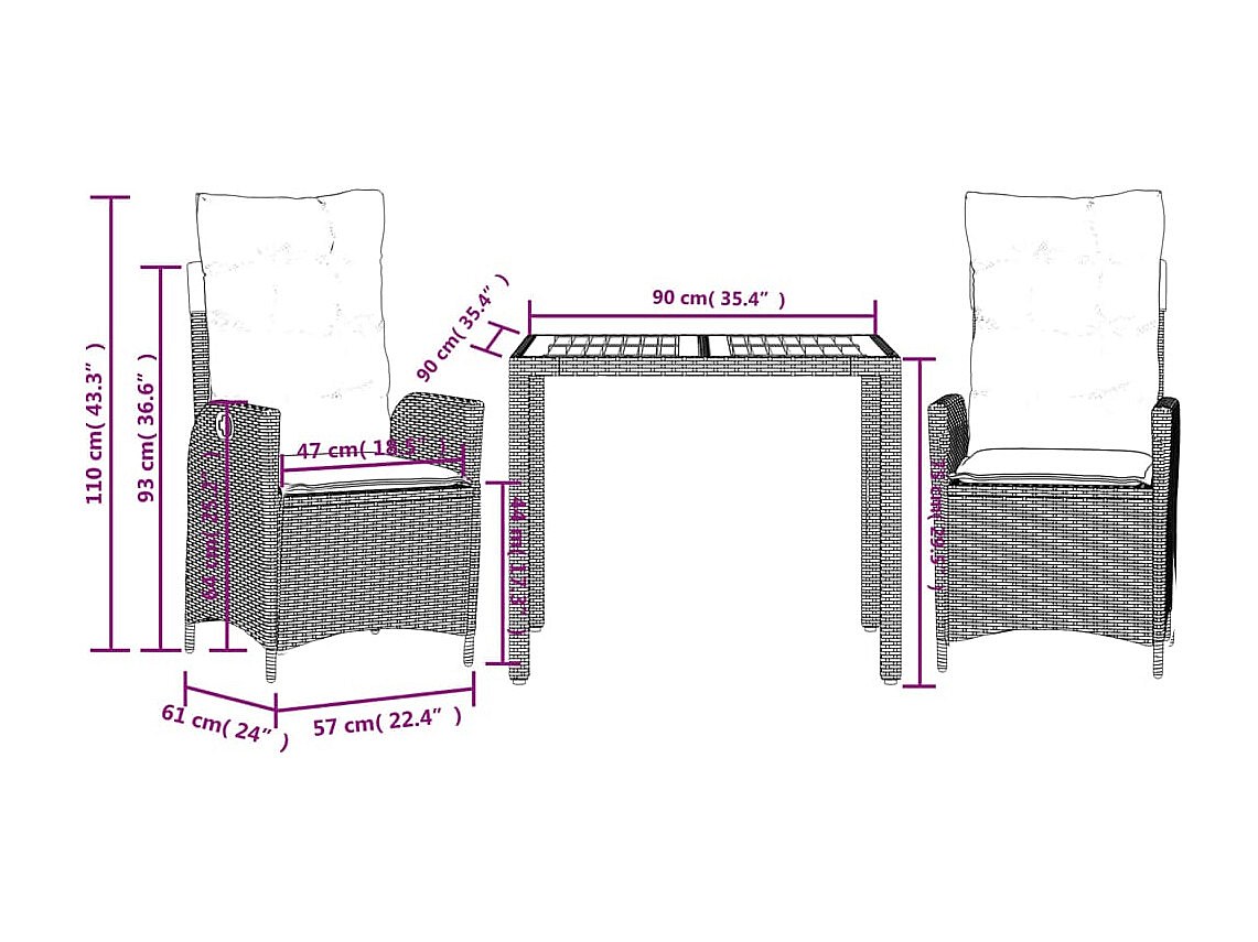 Wanda Ensemble à manger de jardin 3 pcs coussins gris résine tressée