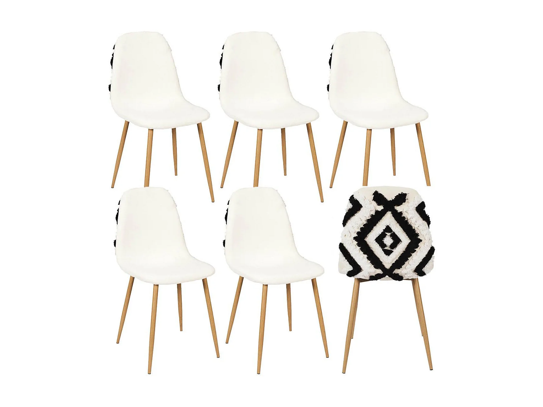 WAP - Lot de 6 Chaises Blanches et Noires Pieds Effet Bois