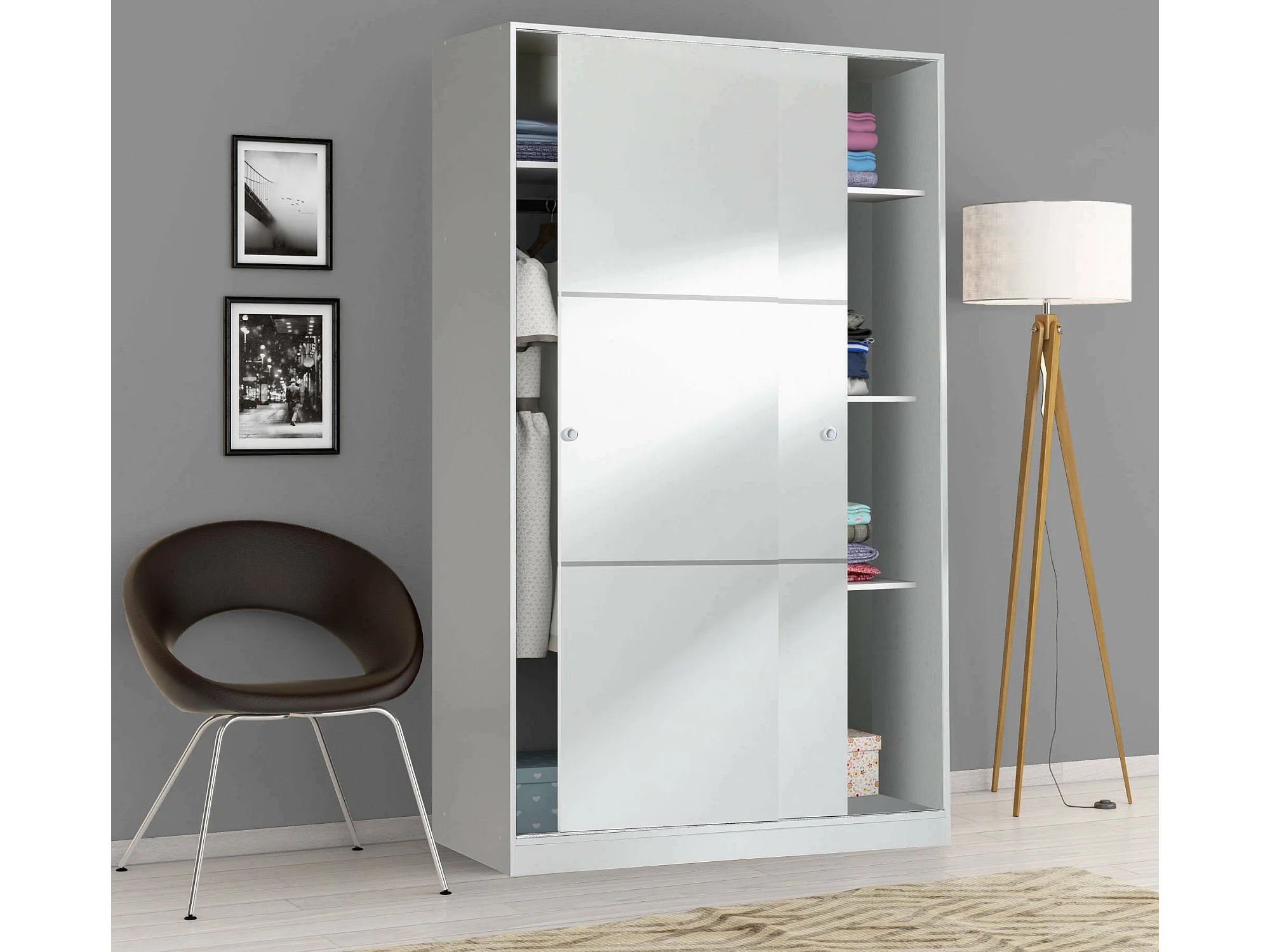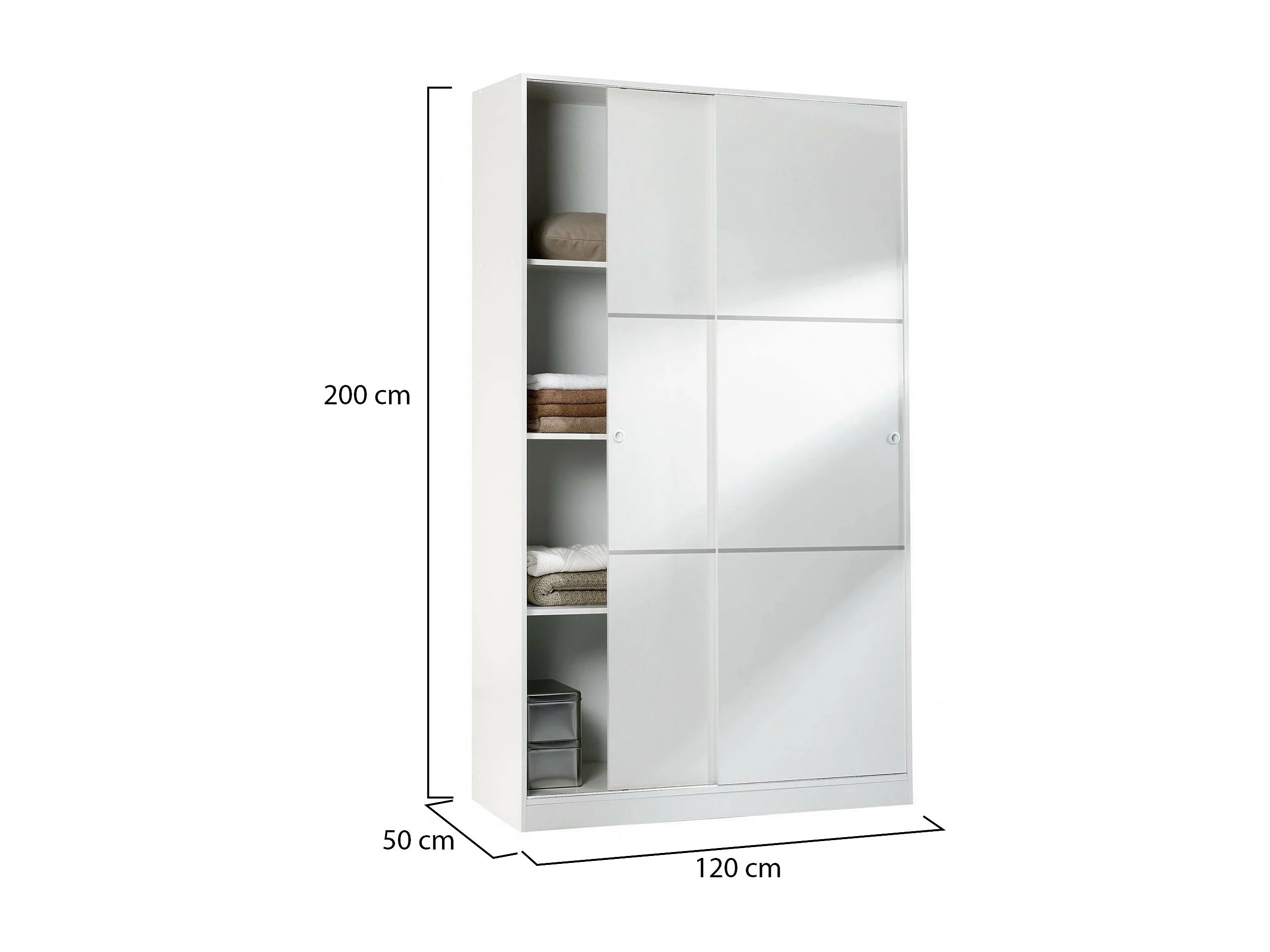 Waterbury Armoire, Armoire de Chambre avec 2 Portes coulissantes, Armoire avec 4 étagères et Tringle à vêtements, 120x50h200 cm, Blanc