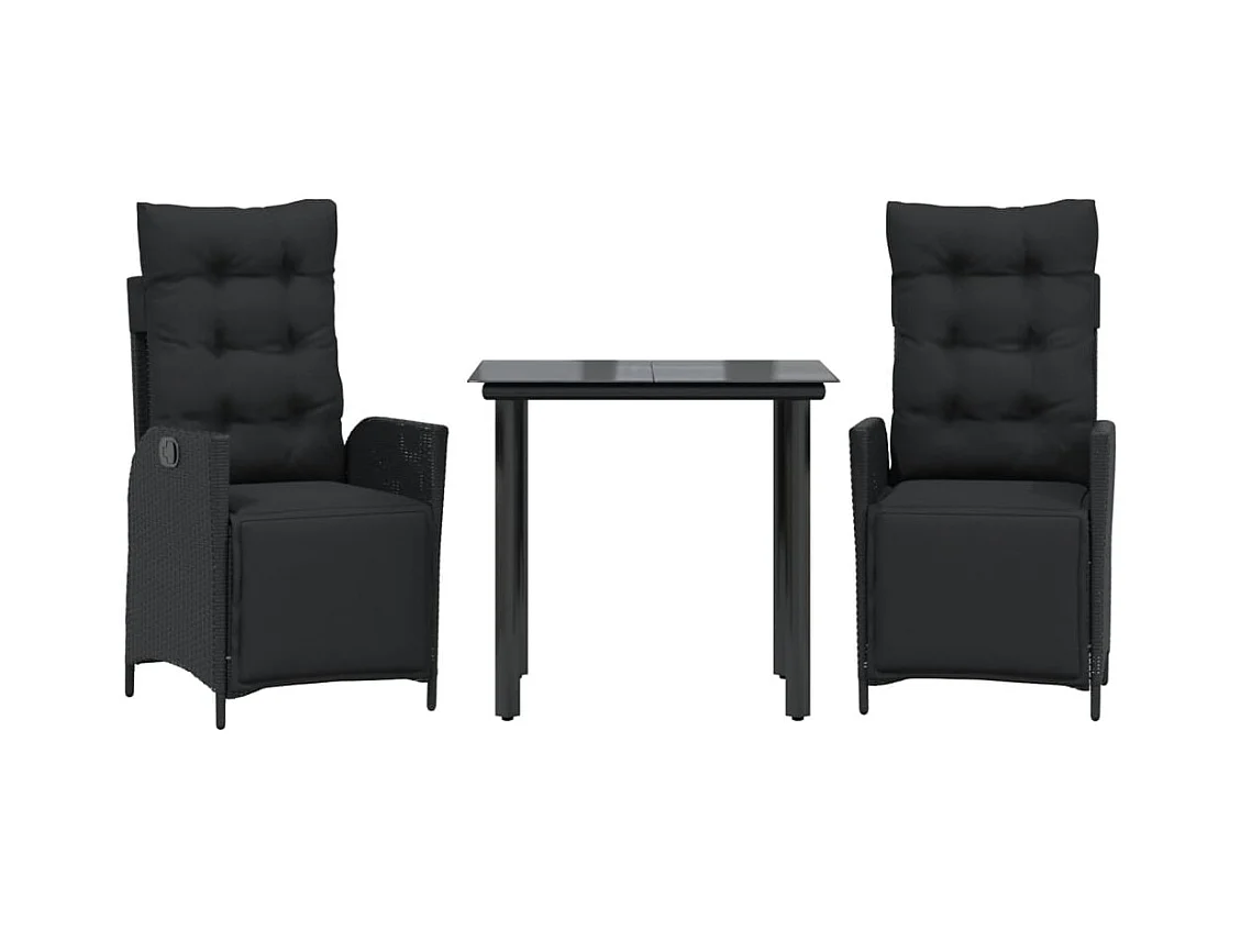 Waupun Ensemble à manger de jardin avec coussins 3 pcs Noir