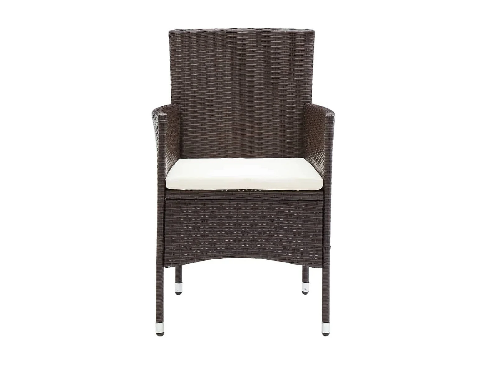 Wausau Ensemble à dîner de jardin avec coussins 3 pcs poly rotin brun