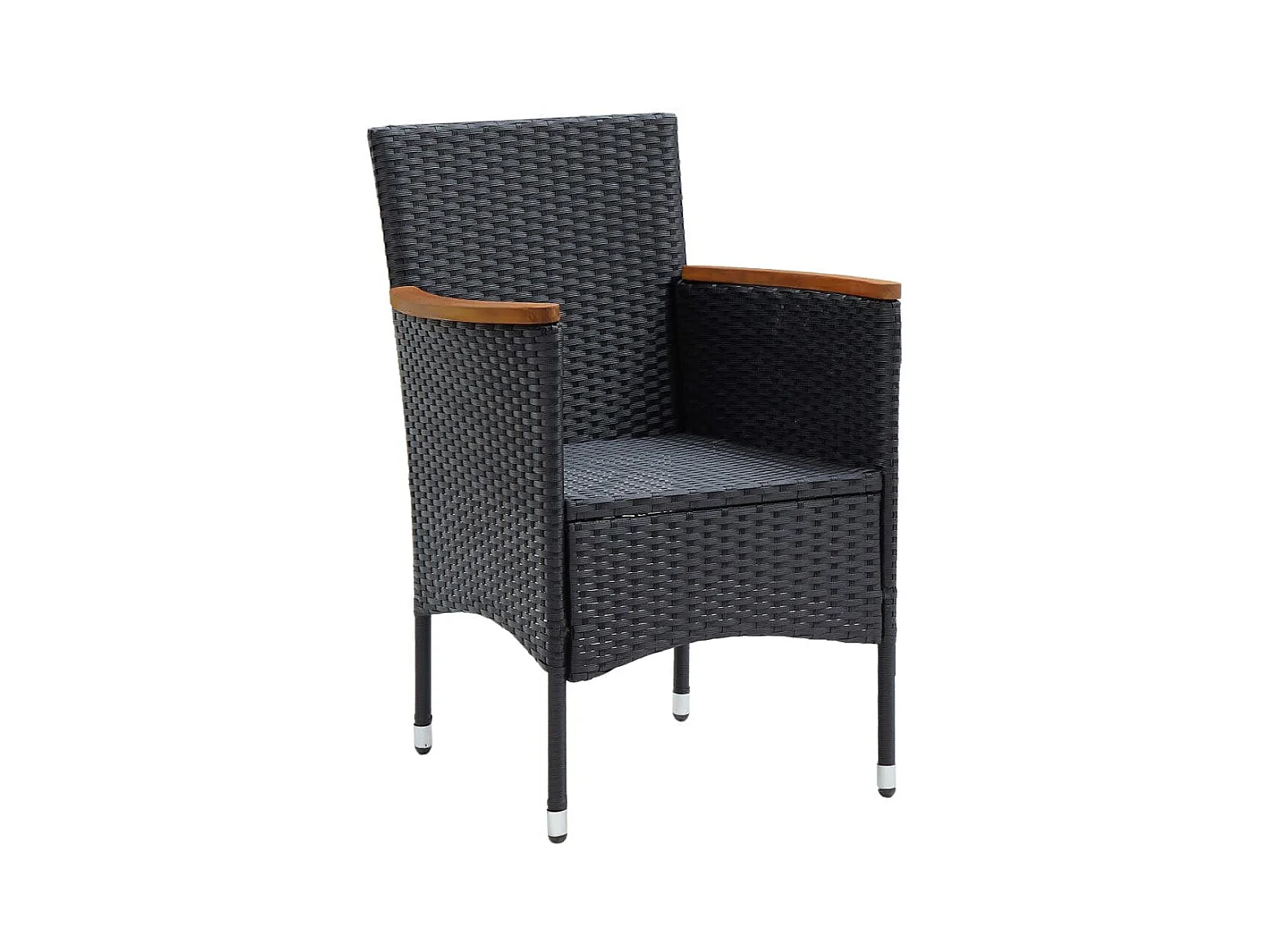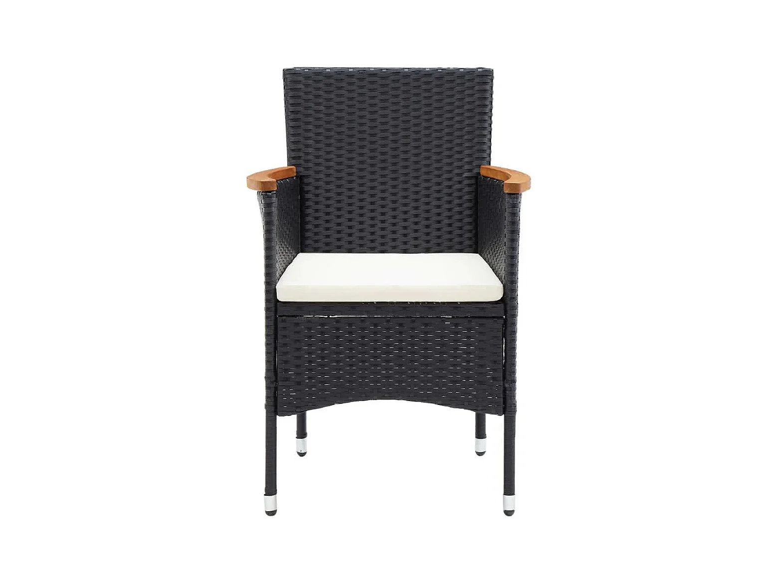 Wausau Ensemble à dîner de jardin avec coussins 5 pcs poly rotin noir