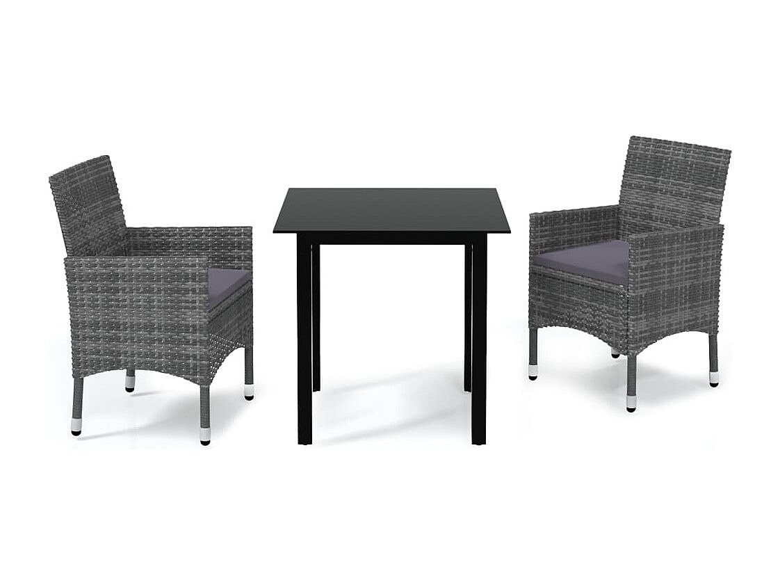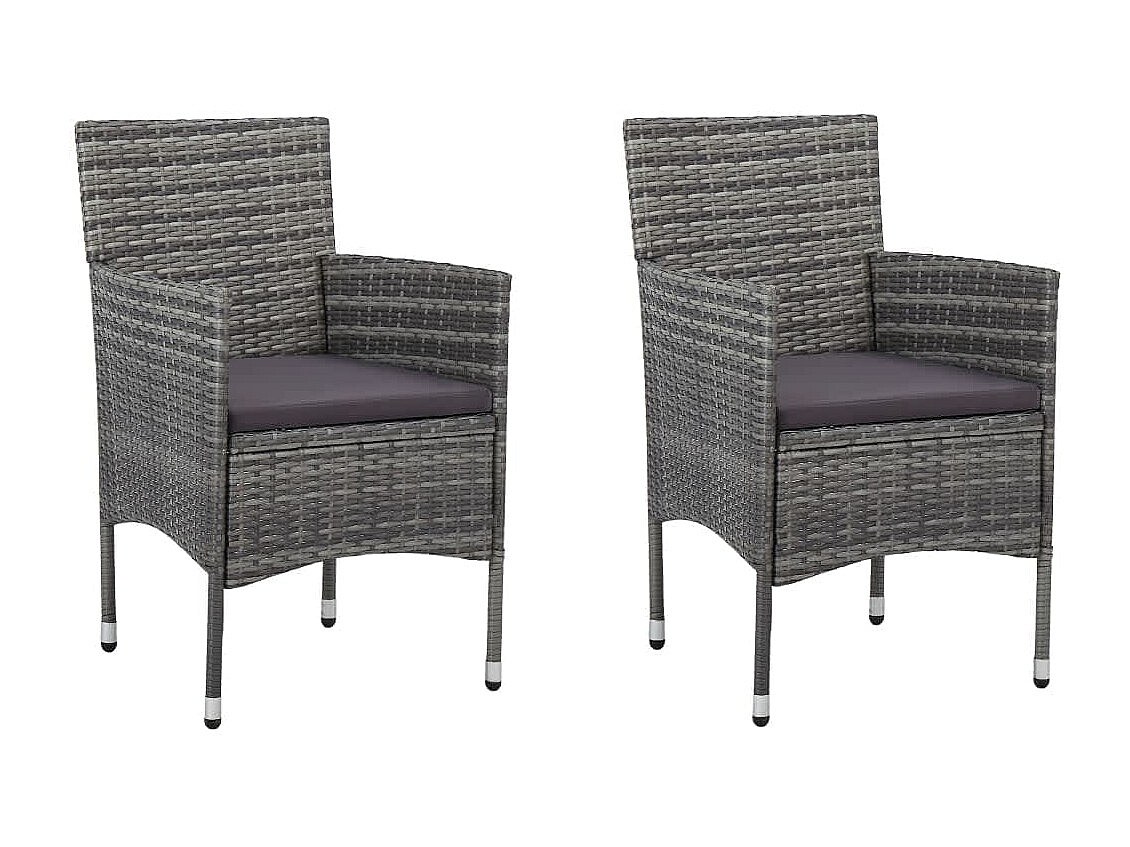 Wausau Ensemble à manger de jardin coussins 3pcs Résine tressée Gris