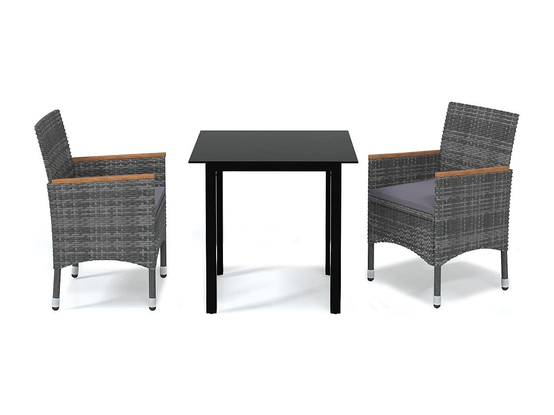 Wausau Ensemble à manger de jardin coussins 3pcs Résine tressée Gris