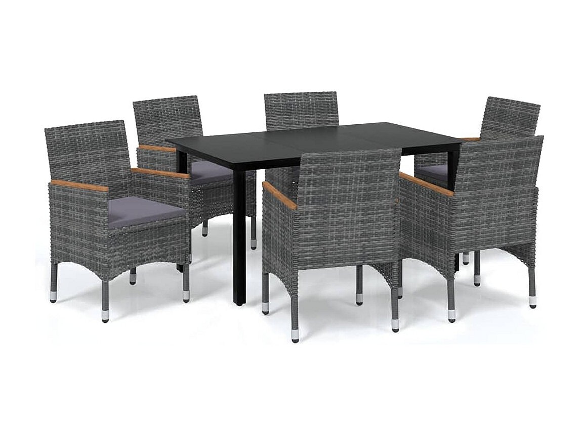 Wausau Ensemble à manger de jardin coussins 7pcs Résine tressée Gris