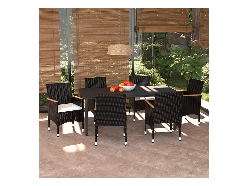 Wausau Ensemble à manger de jardin coussins 7pcs Résine tressée Noir