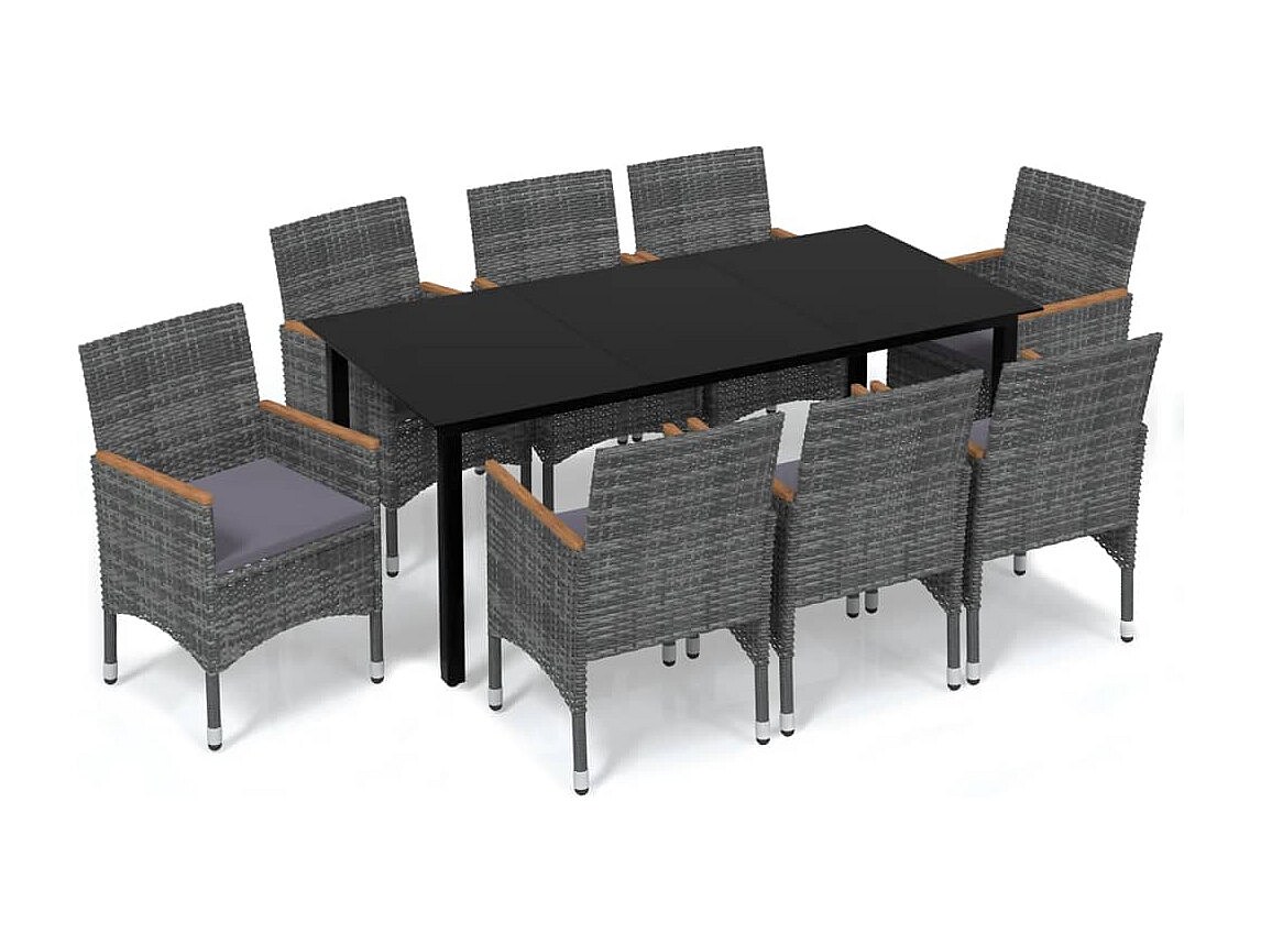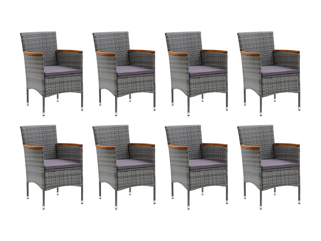 Wausau Ensemble à manger de jardin coussins 9pcs Résine tressée Gris