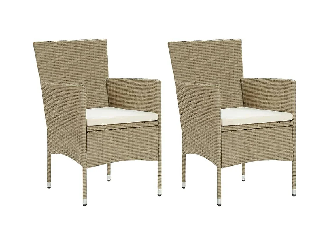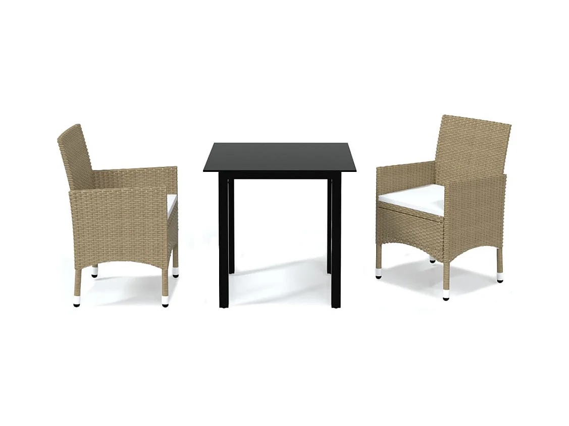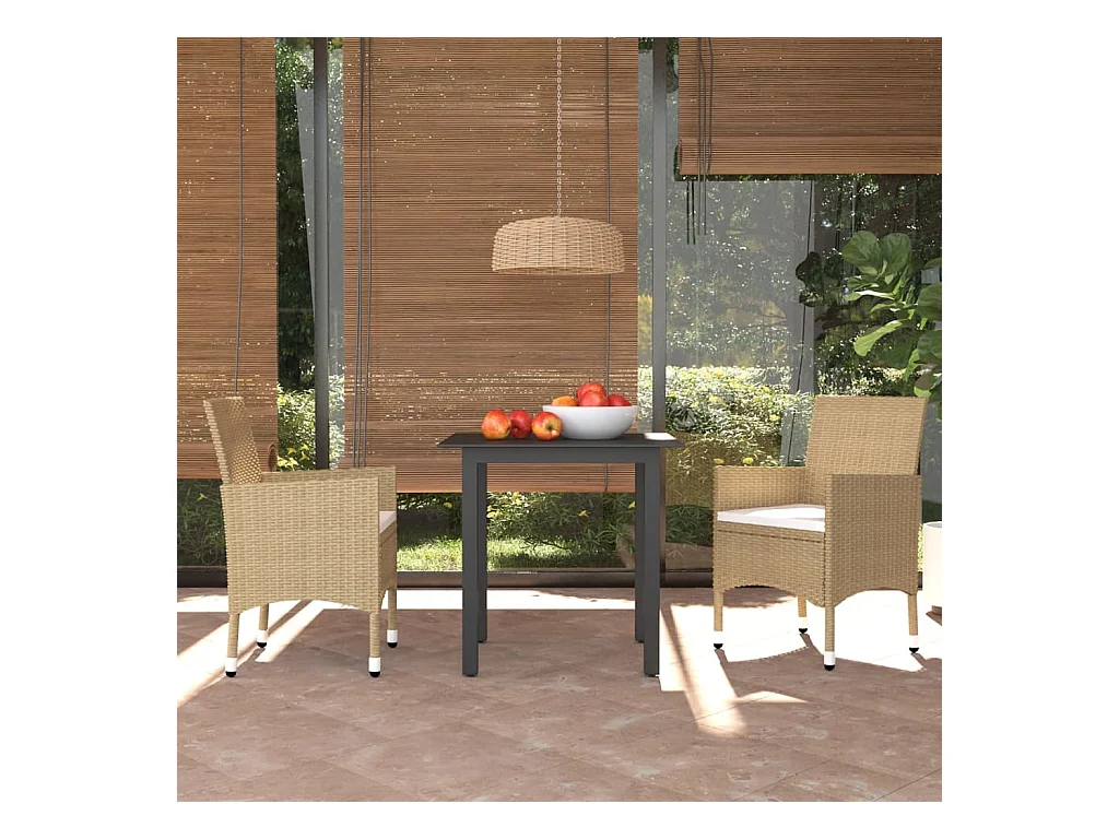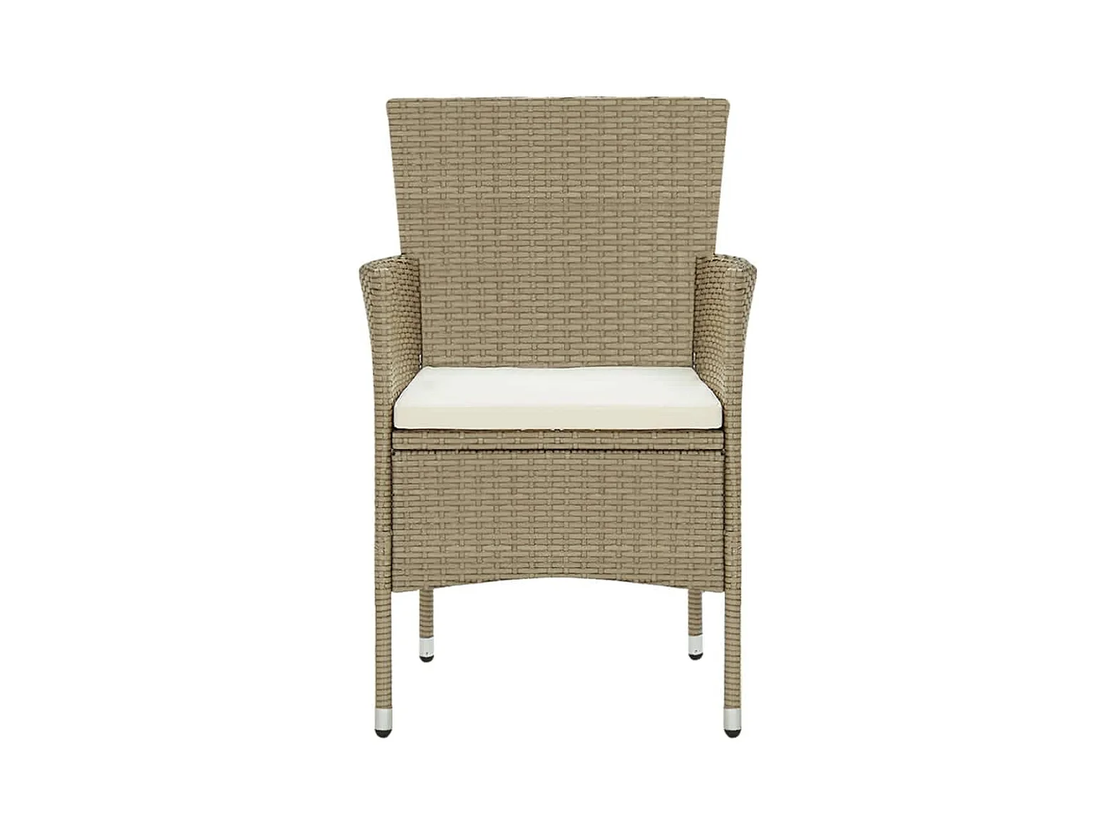 Wausau Ensemble à manger de jardin et coussins 3 pcs Poly rotin Beige