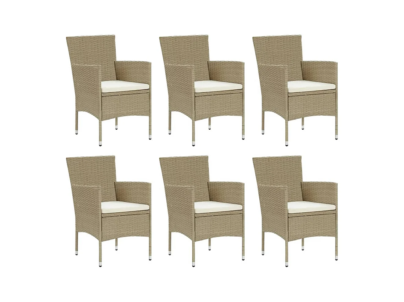 Wausau Ensemble à manger de jardin et coussins 7 pcs Poly rotin Beige