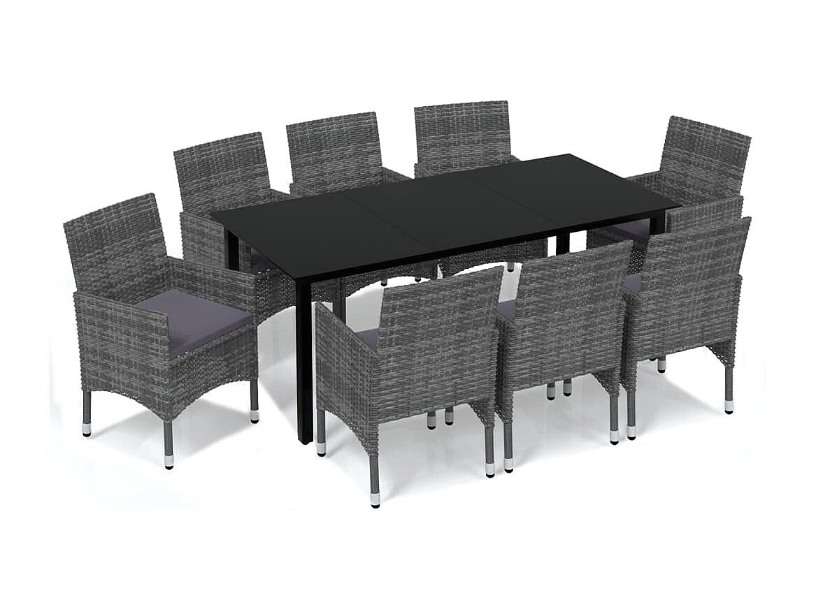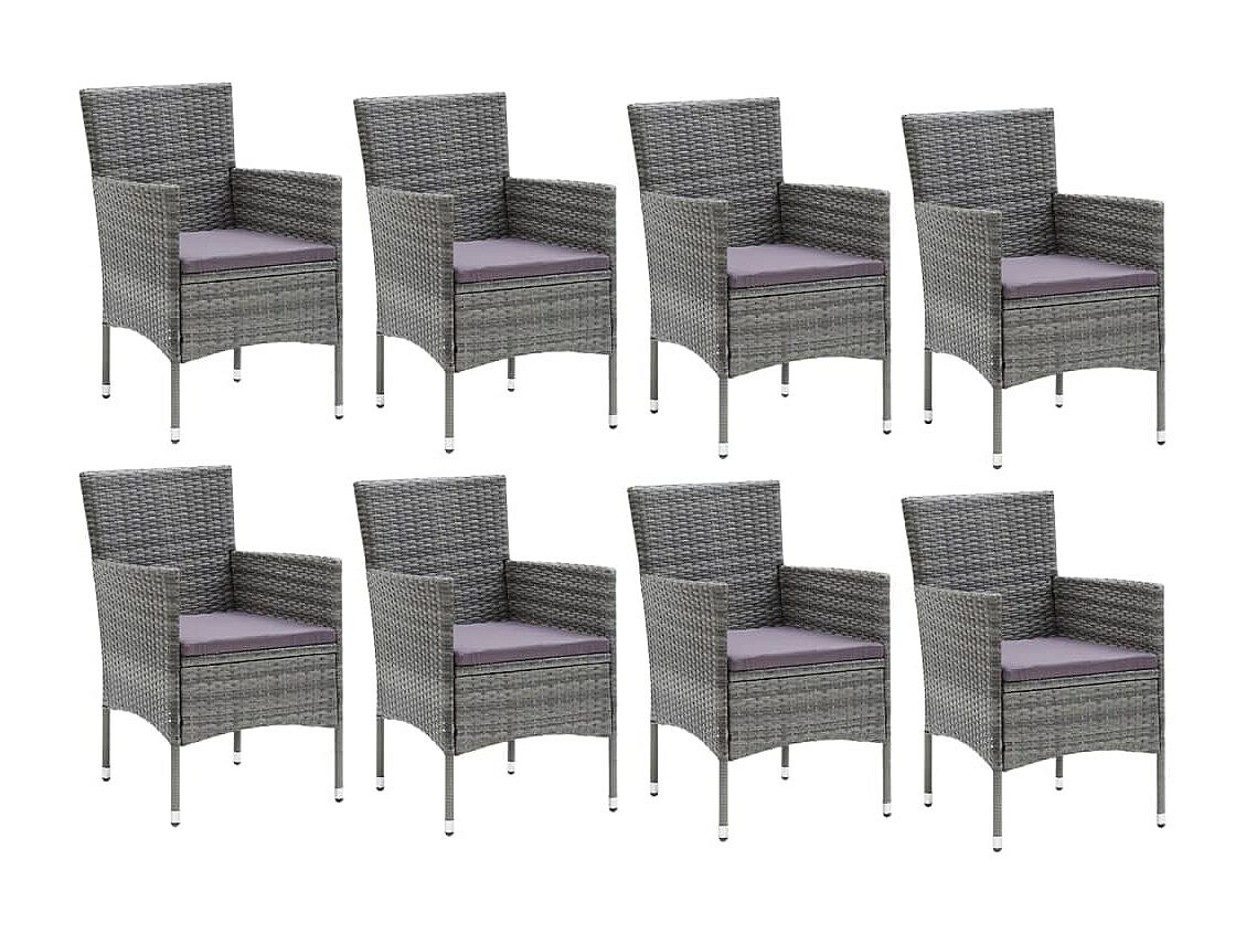 Wausau Ensemble à manger de jardin et coussins 9 pcs Poly rotin Gris