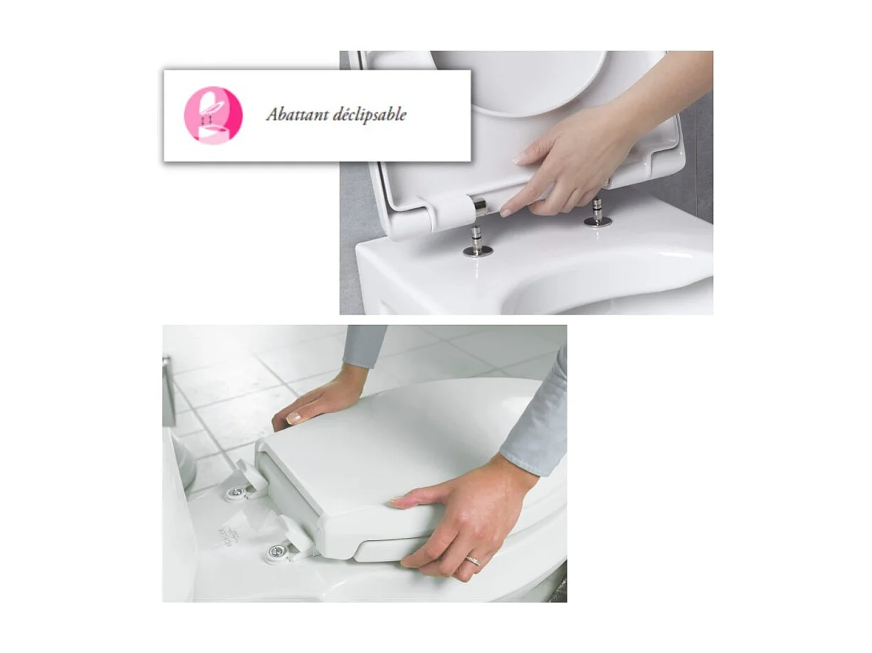 WC à poser sans bride sortie horizontale JACOB DELAFON Patio avec abattant frein de chute déclipsable