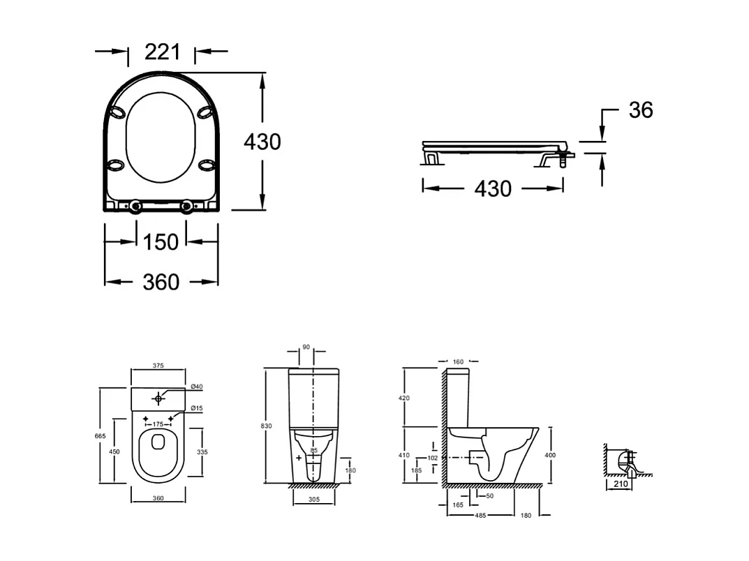 WC à poser sans bride sortie universelle JACOB DELAFON Rodin+ avec abattant frein de chute